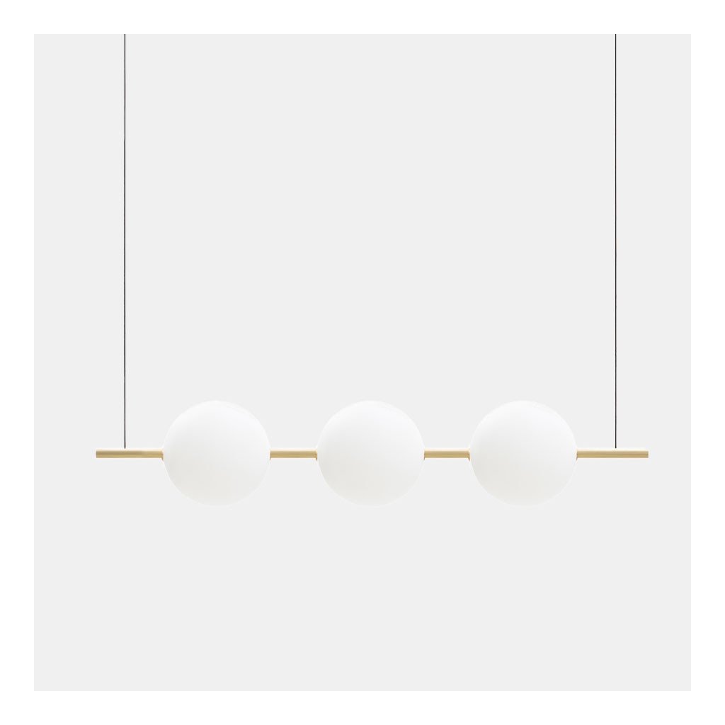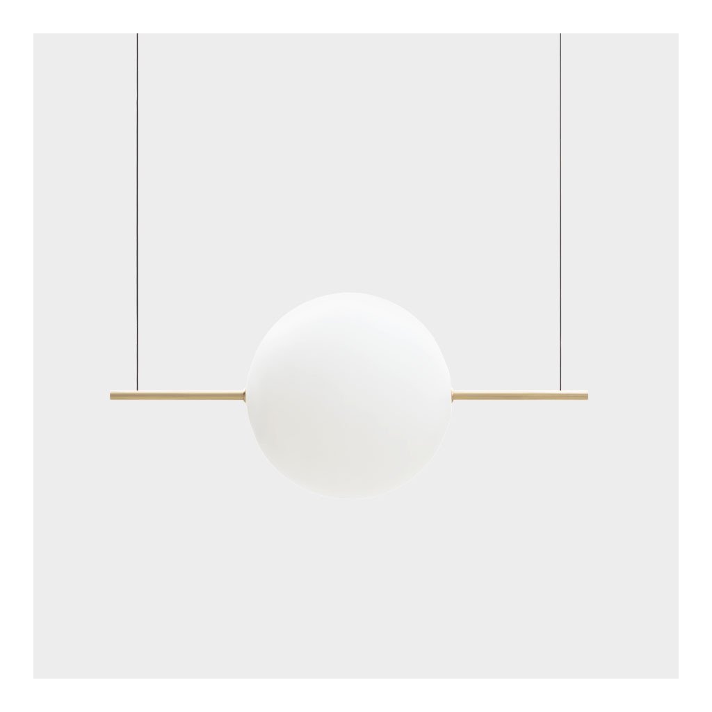 - Krásné, skleněné, závěsné svítidlo. Kombinace difuzního skla a mosazi zapadá do mnoha interiérů. Vyvážená geometrie dodává pocit stability a zároveň lehkosti.