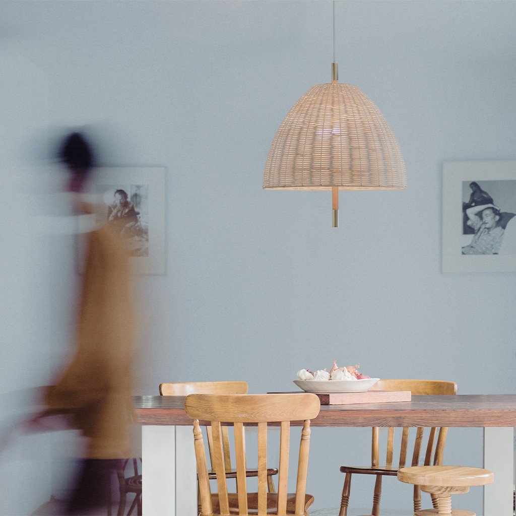 - Název elegantního svěšeného svítidla Amà pochází z katalánského „a mà“, což znamená „ručně vyrobené“, a tak se toto svítidlo i vyrábí. Svítidlo Amà čerpá inspiraci ze středomořských domů od slavných španělských a katalánských architektů 20. století. Tělo z ručně soustruženého bukového dřeva s masivními mosaznými detaily a ručně tkané proutěné stínítko s přírodním ratanovým dekorem skládají kompliment středomořským řemeslům.