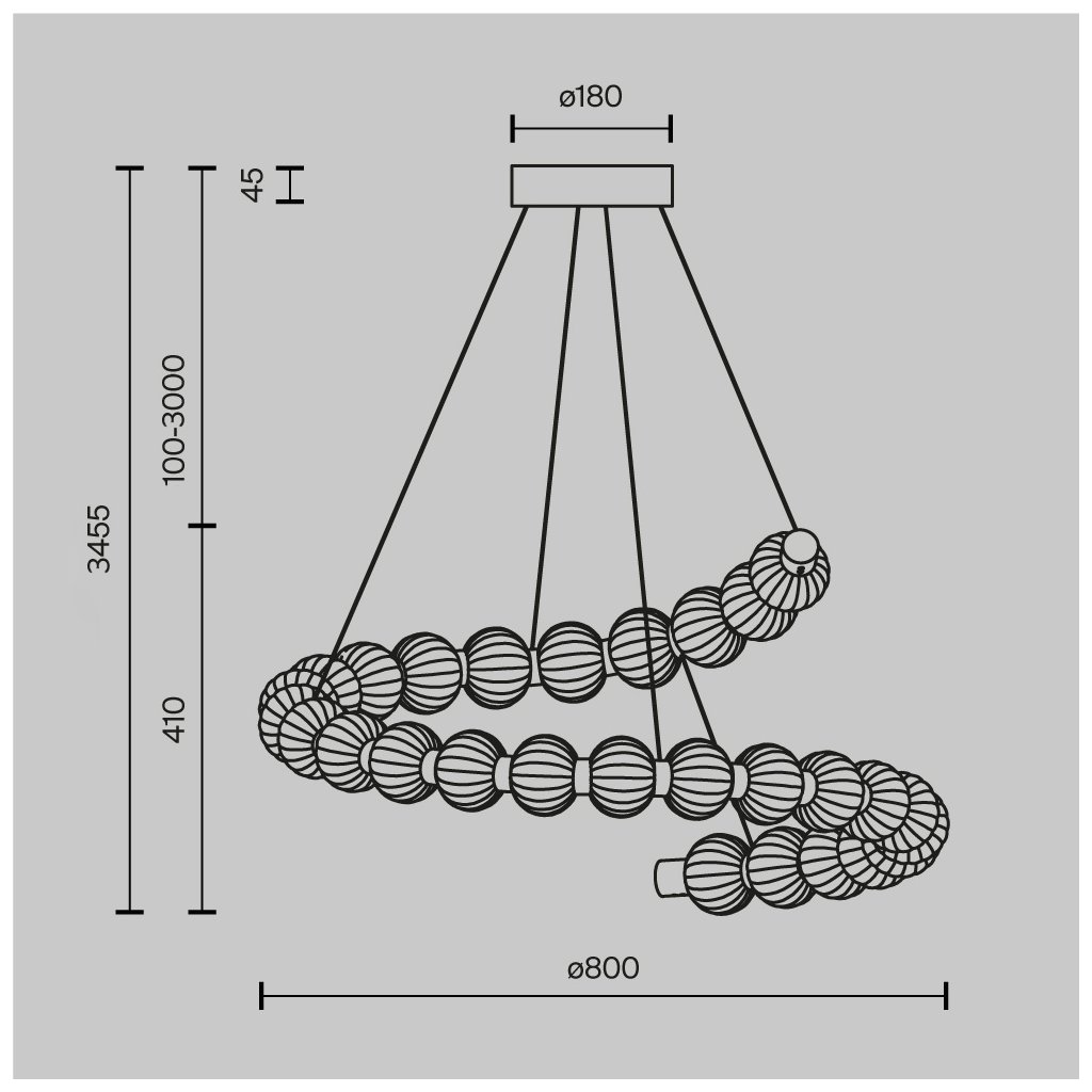 Rozměry svítidla jsou ø800/410 mm.