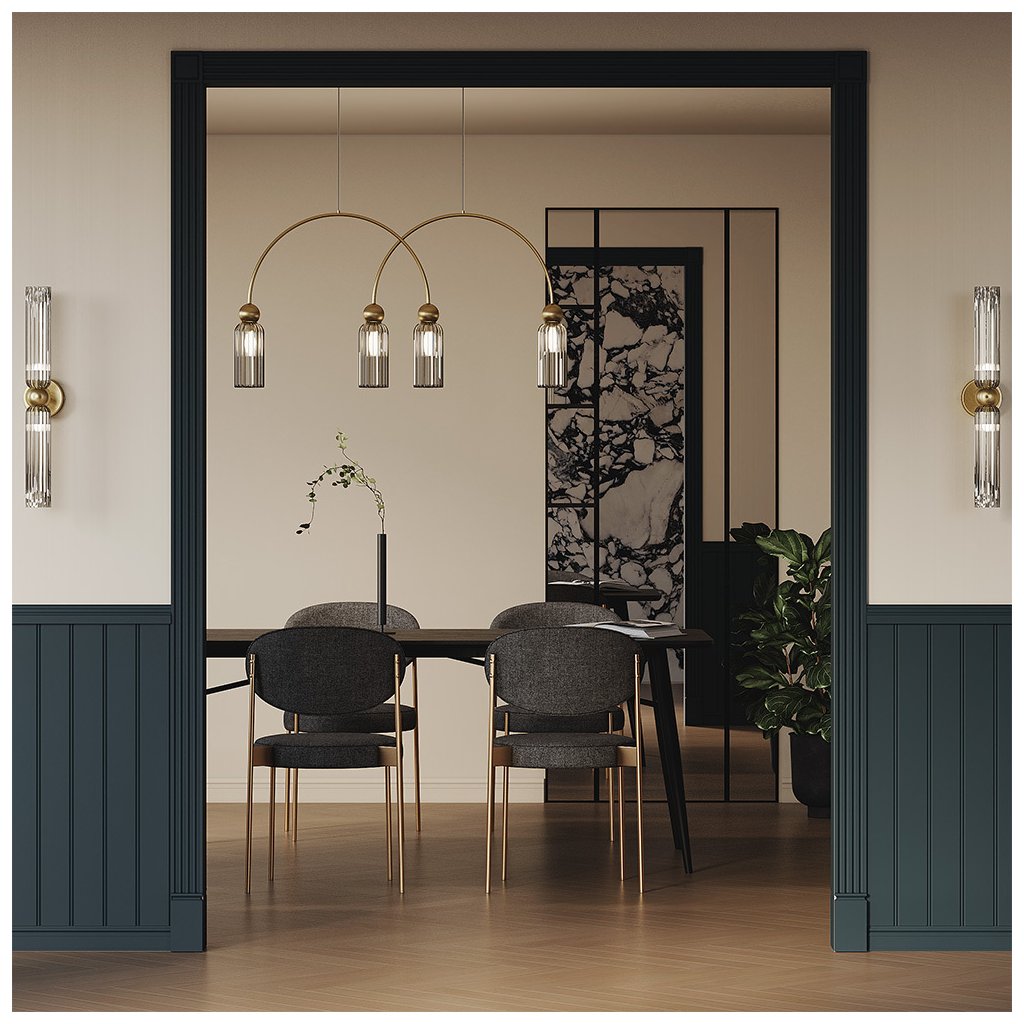 Skleněné svěšené svítidlo Antic Double kombinuje retro prvky se současnými trendy, přičemž dosahuje dokonalé rovnováhy mezi klasickými proporcemi a moderními inovacemi. Nápadné závěsné svítidlo Antic Double ztělesňuje eleganci a harmonii bez nadměrné zdobnosti. Žebrovaná struktura skleněných stínítek navíc zesiluje odrazy světla, čímž dodává svítidlu hloubku a jedinečnost.