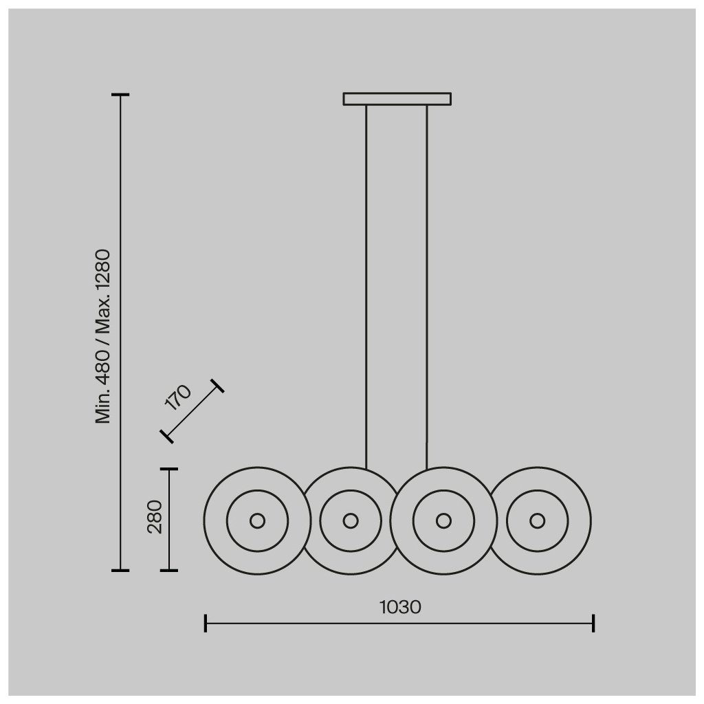 Součástí je stropní rozeta v barvě svítidla a nastavitelný tyčový závěs svítidla, kdy je možné nastavit celkovou výšku svítidla mezi 480-1280 mm.