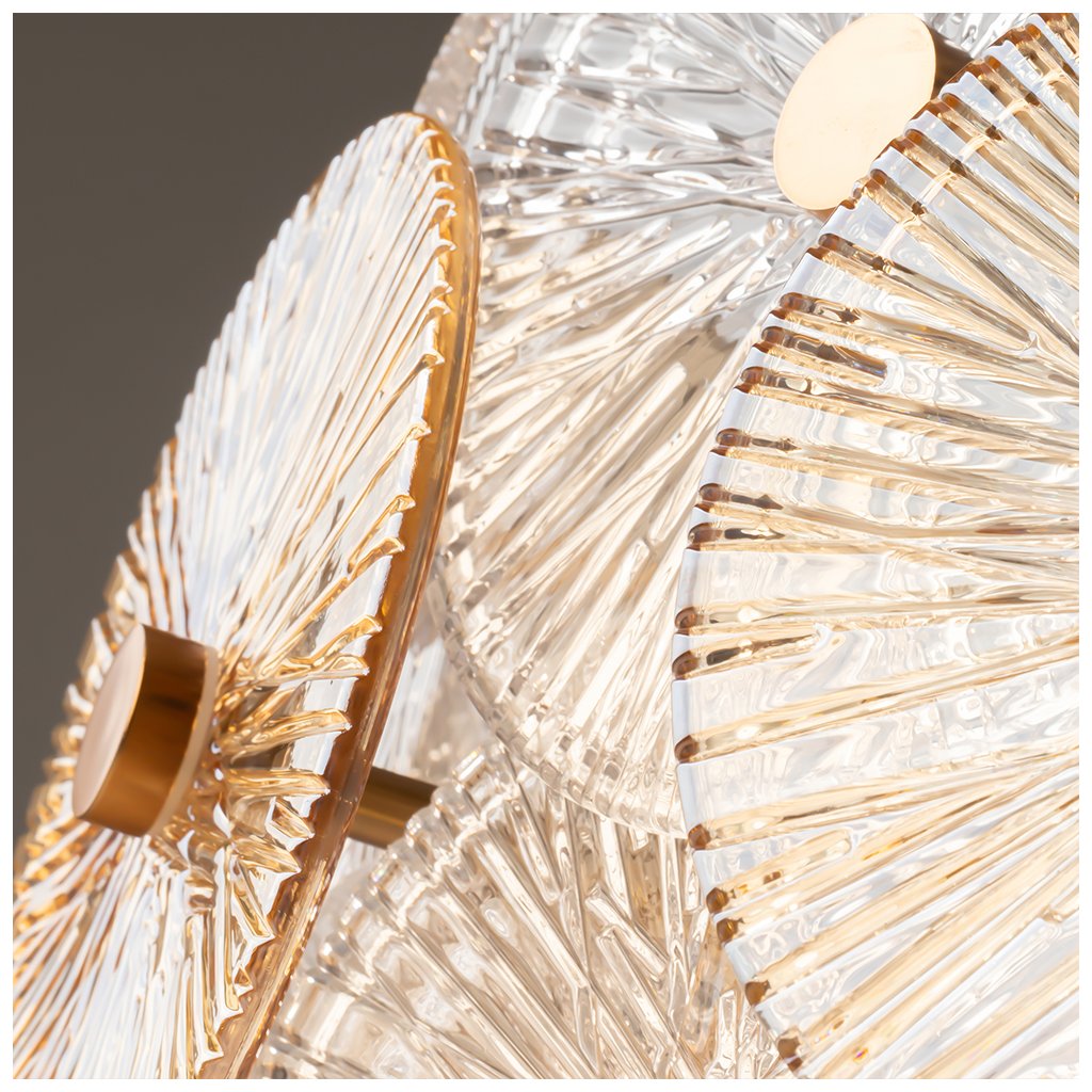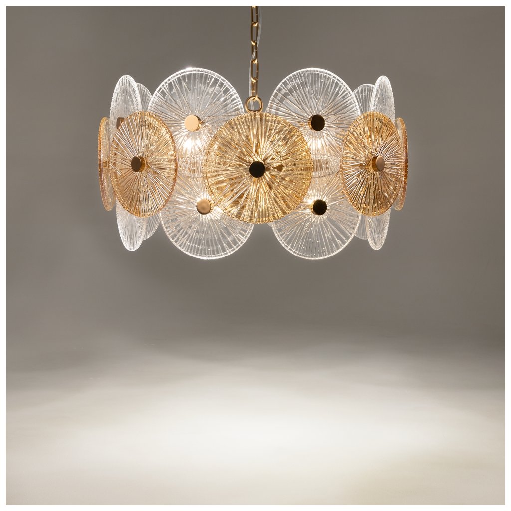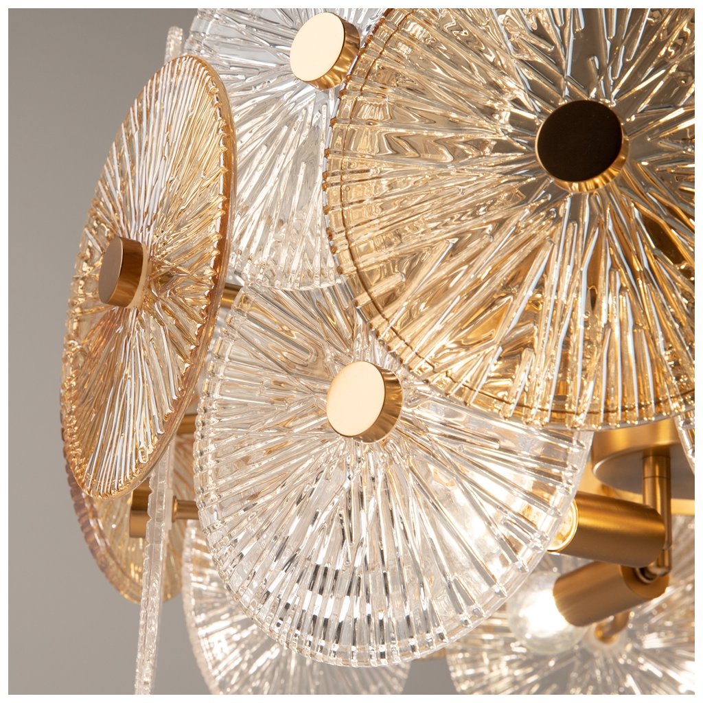 Elegantní závěsné svítidlo Aster ztělesňuje bohémského ducha obohaceného o prvky art deco. Jádrem designu luxusního svítidla Aster jsou sférické komponenty vyrobené ze skla ve dvou barvách: čiré a jantarové. Texturovaný povrch stínidel odráží současné designové trendy, zatímco zlatý kovový rám podtrhuje nadčasovou sofistikovanost art deco.