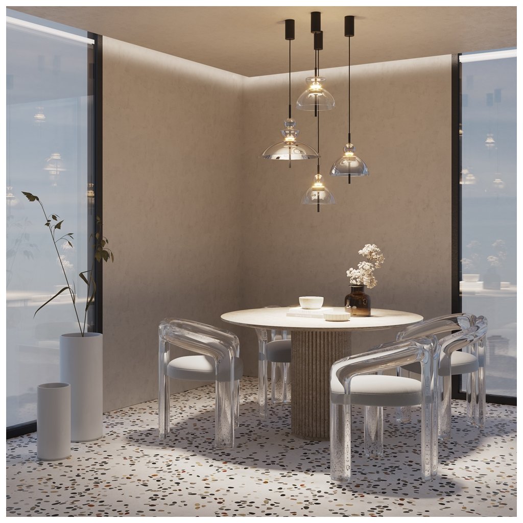 Součástí je válcová stropní rozeta v černé barvě a nastavitelný kabelový závěs svítidla, kdy je možné nastavit celkovou výšku svítidla mezi 680-3580 mm.