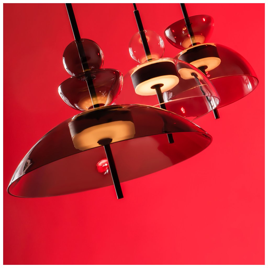 Skleněné svěšené svítidlo Bangkok Round Large čerpá inspiraci z thajského hlavního města, kde vedle sebe existují starobylé chrámy, moderní mrakodrapy a pulzující orientální energie. Silueta tohoto svítidla odráží buddhistickou architekturu, zatímco LED zdroje světla svítící nahoru i dolů vytvářejí ohromující efekt. Toto unikátní svítidlo tak přinese exotickou atmosféru do jakéhokoli obývacího pokoje, kuchyně, ložnice, ale i kanceláře, recepce či restaurace.