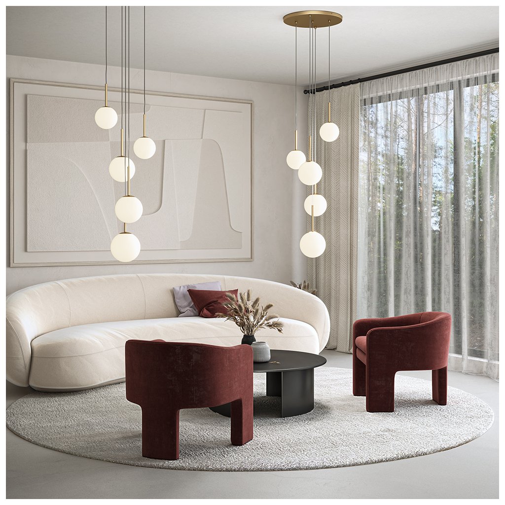 Designové svěšené svítidlo Basic Form 5 je ztělesněním minimalismu v moderním designu osvětlení, protože se jeho čistá kulatá stínítka dokonale hodí jak do moderních, tak do neoklasicistních interiérů. Závěsné svítidlo Basic Form 5 je ideální volbou pro kohokoli, kdo ocení jednoduchost a univerzálnost designu osvětlení, které však vytváří pohodovou atmosféru a zároveň doplní jakýkoli interiér svou minimalistickou elegancí.
