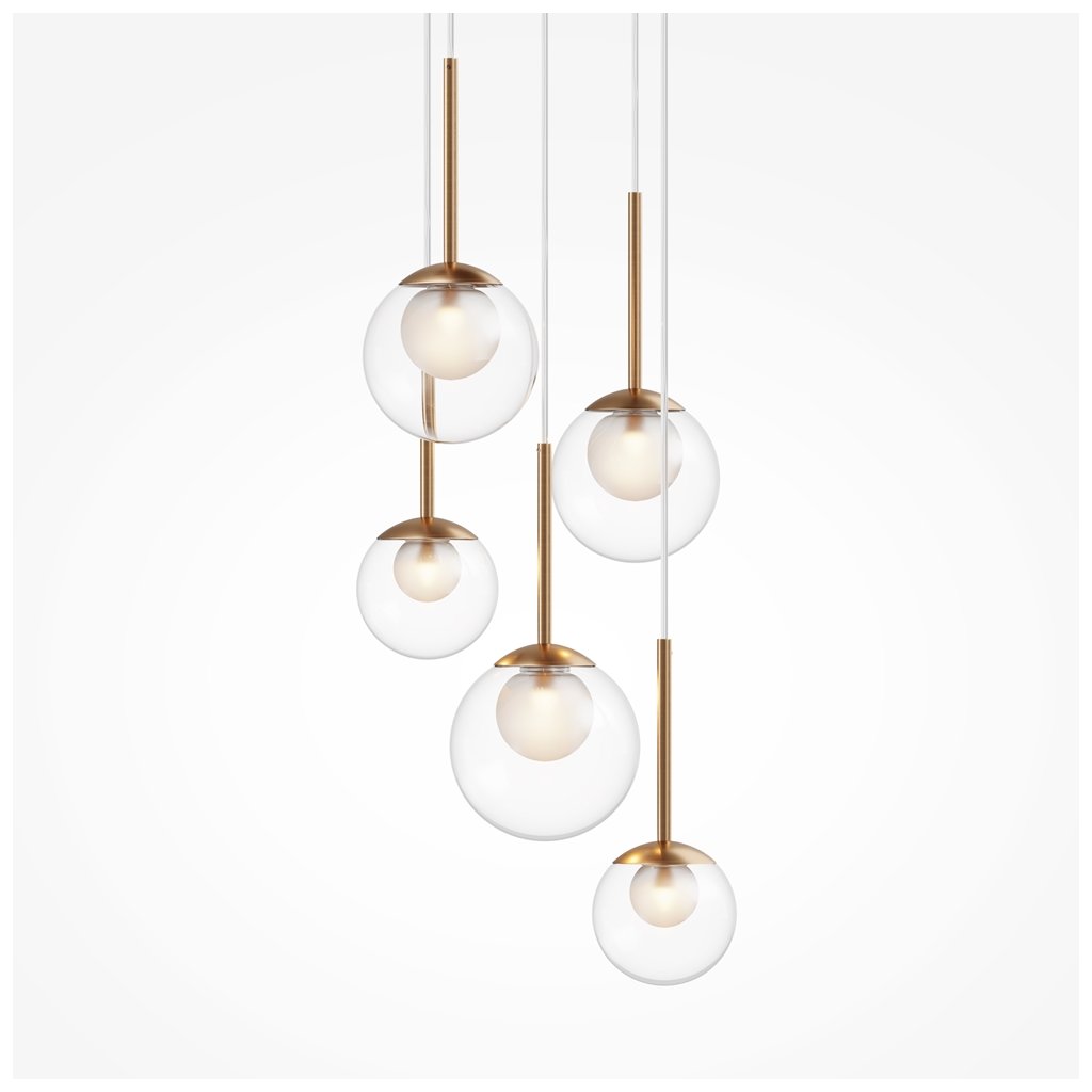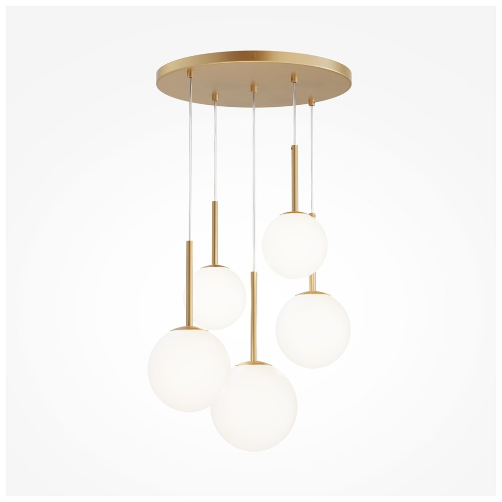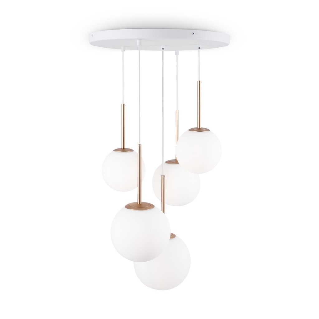 Pět patic E14 pro vyměnitelné žárovky pro varianty s bílým sklem a černým nebo zlatým tělem. (Žárovky nejsou součástí balení.)