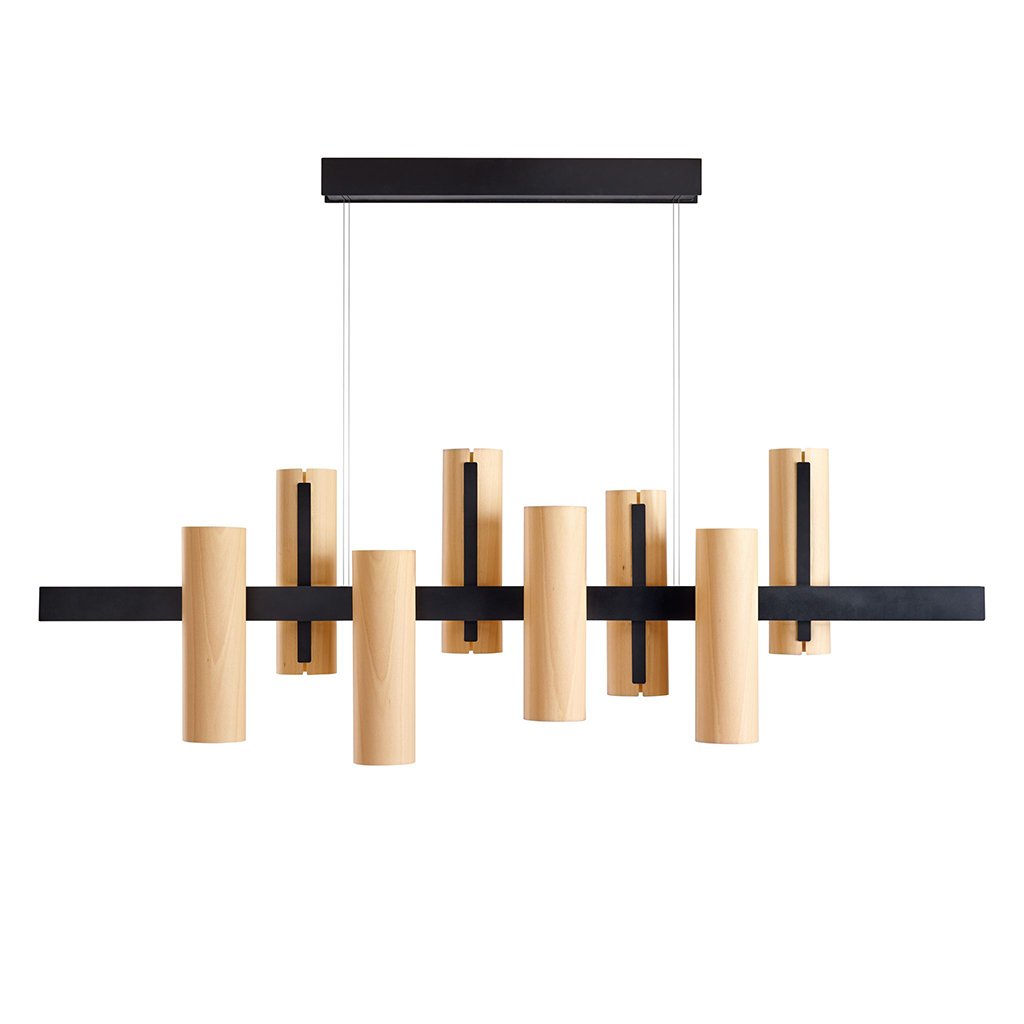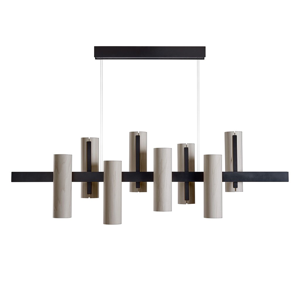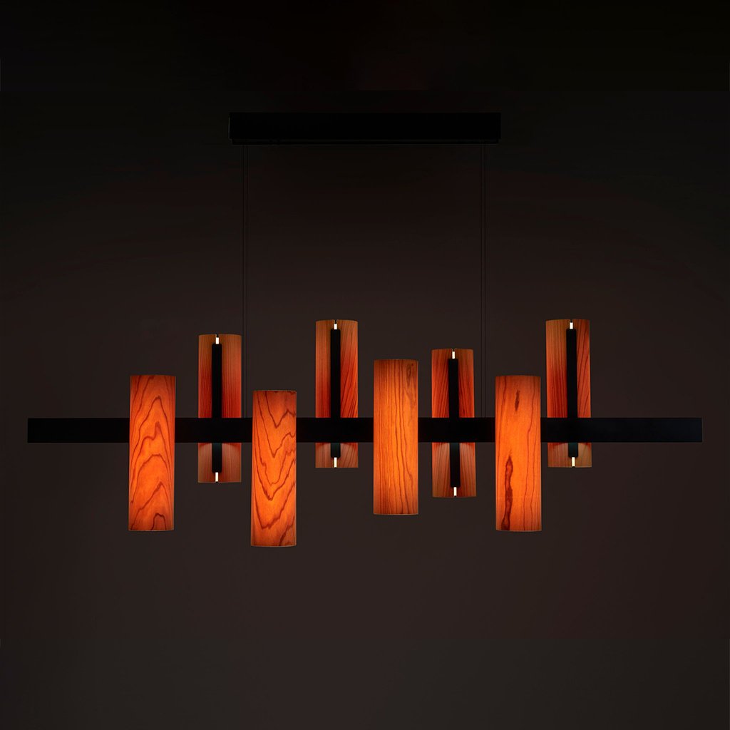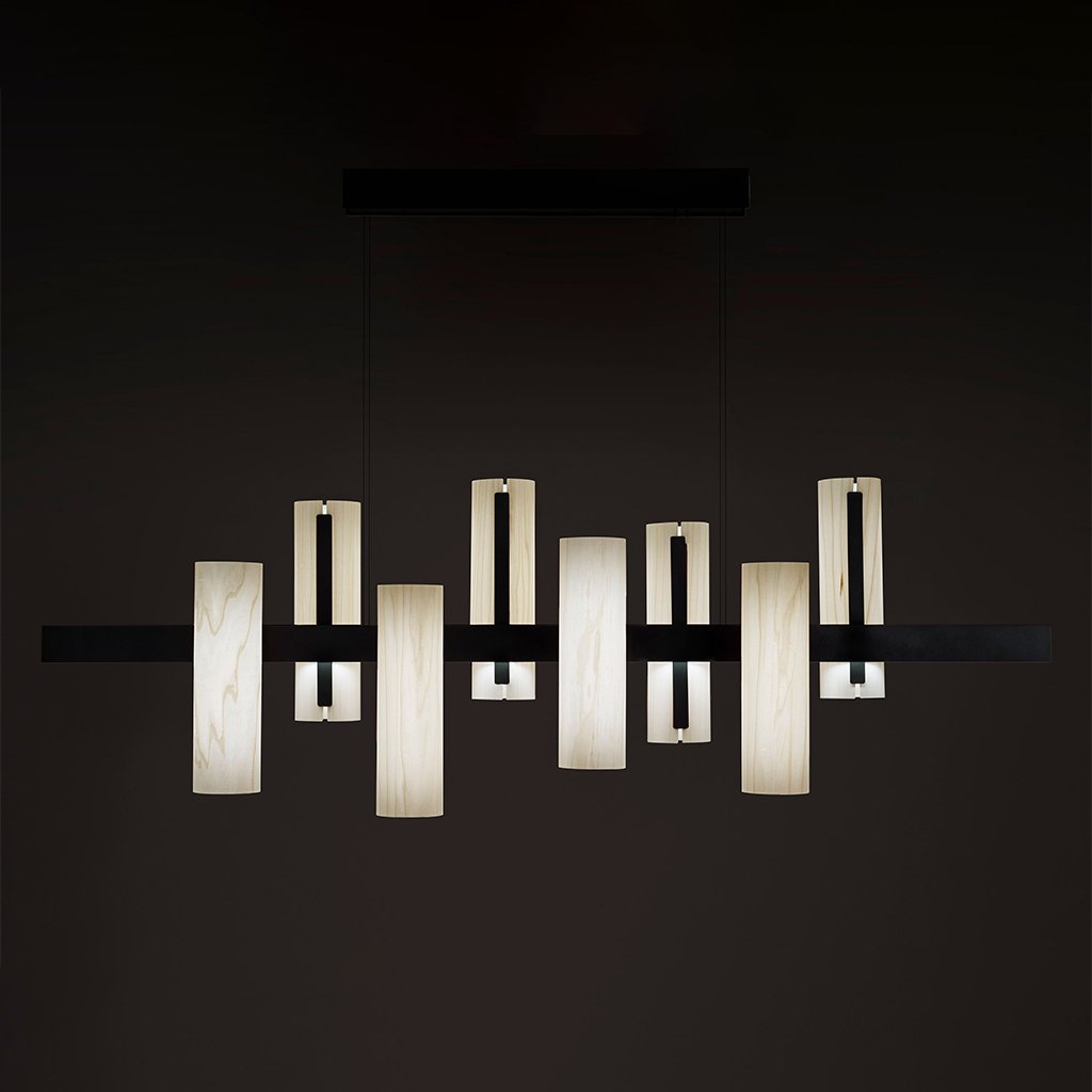 Moderní závěsné svítidlo Black Note Keys je architektonicky zajímavé svítidlo s harmonickými svislými válcovými stínítky z dřevěné dýhy a podlouhlým tělem z kovu. Rytmický vzhled svítidla je inspirován černými klávesami klavíru, jejich ostrými a plochými prvky, které dodávají dramatický efekt.