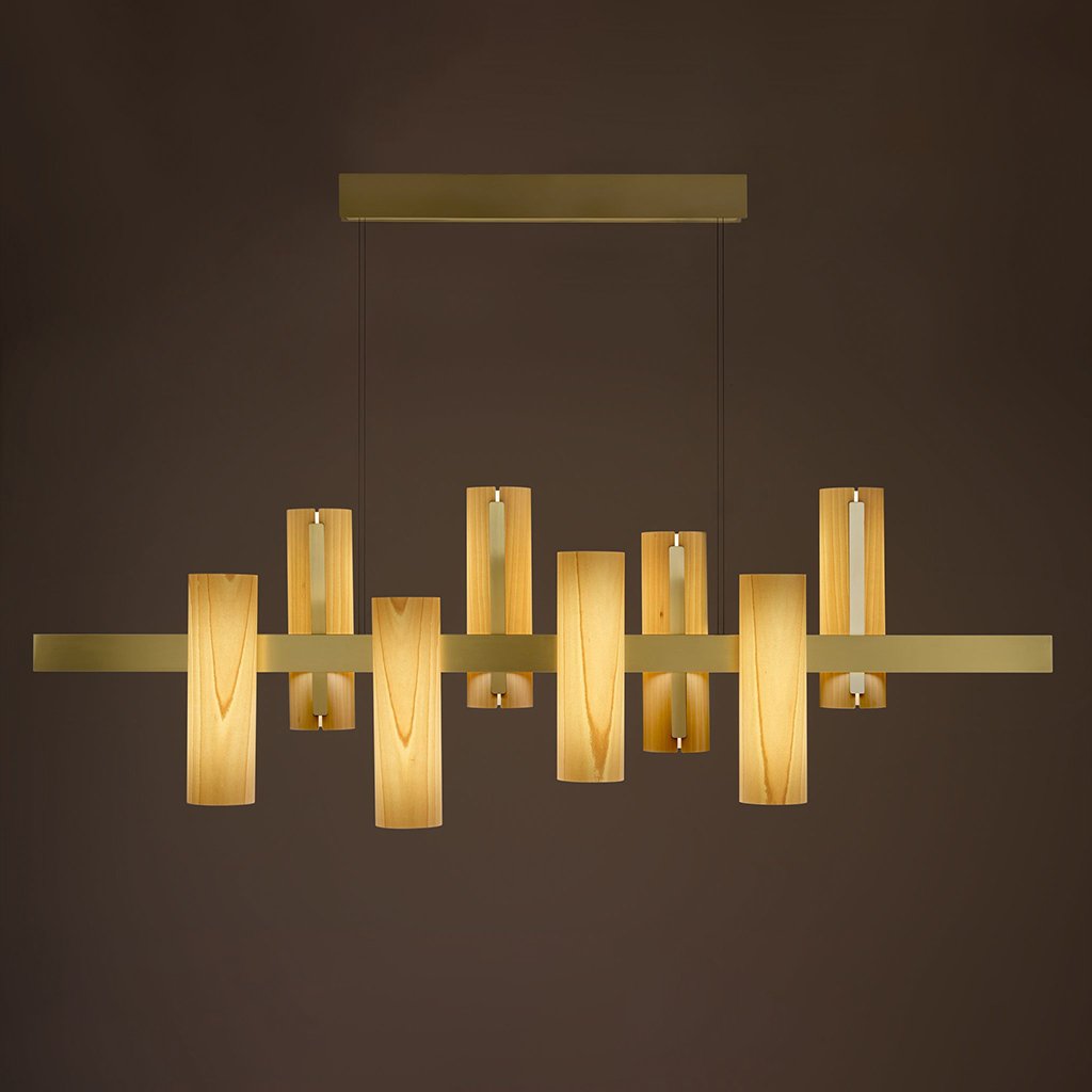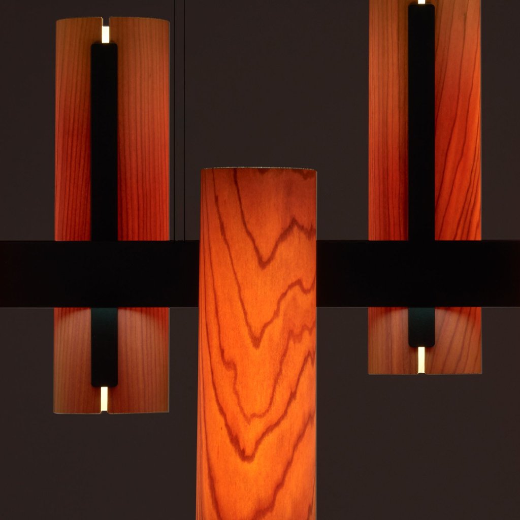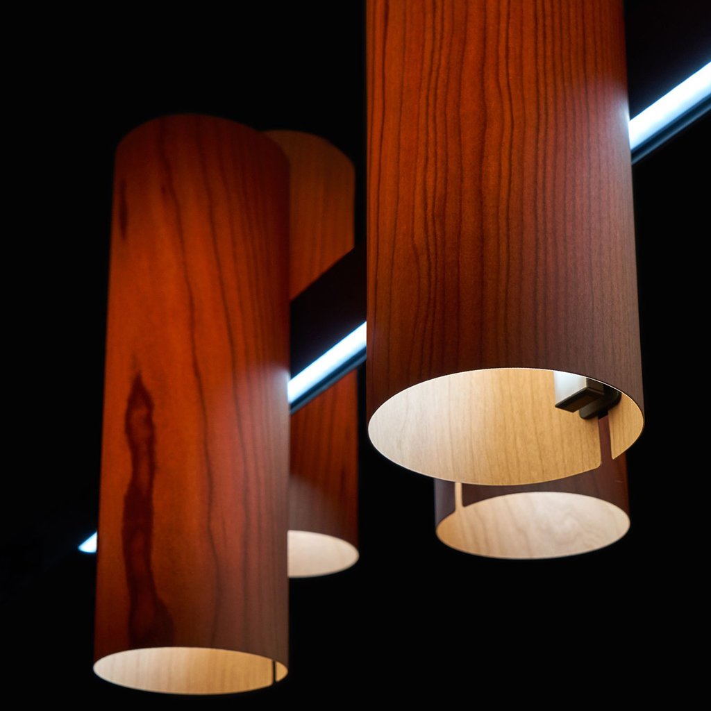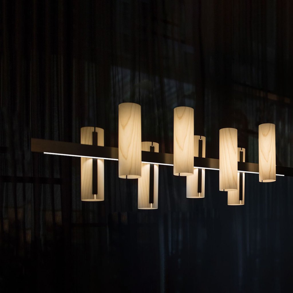 Moderní závěsné svítidlo Black Note Keys je architektonicky zajímavé svítidlo s harmonickými svislými válcovými stínítky z dřevěné dýhy a podlouhlým tělem z kovu. Rytmický vzhled svítidla je inspirován černými klávesami klavíru, jejich ostrými a plochými prvky, které dodávají dramatický efekt.