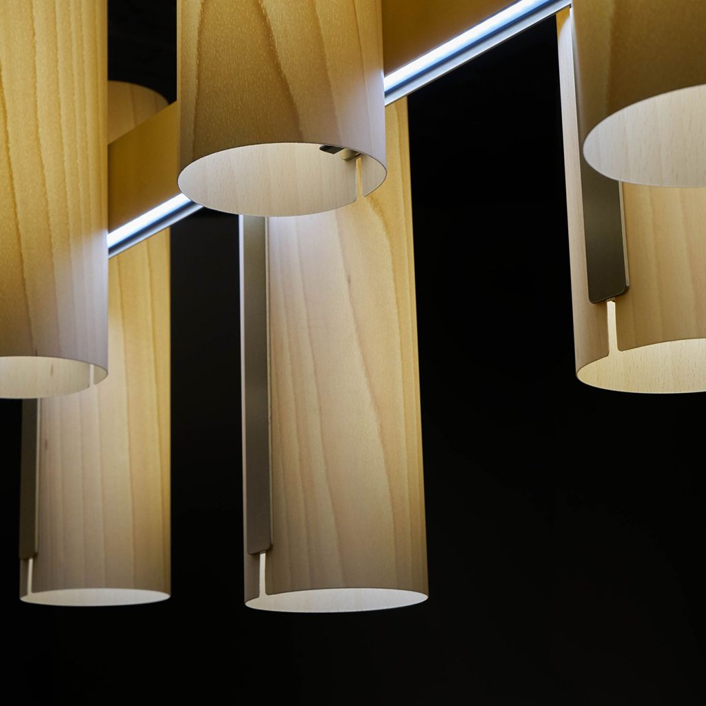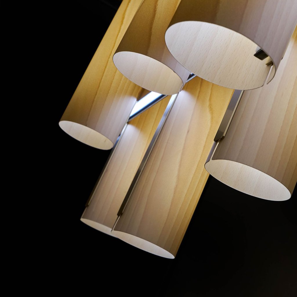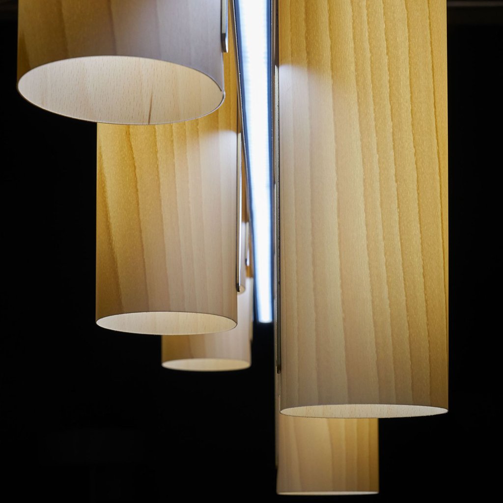 Svítidlo je vyrobené ze dřeva a hliníku.