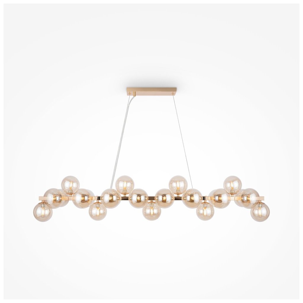 Velké umělecké svěšené svítidlo Dallas Linear 25 tvořené četnými foukanými skleněnými koulemi. Tónované nebo čiré odstíny skleněných stínítek příjemně rozptylují a zjemňují světlo a vytvářejí krásné odlesky. Toto elegantní svítidlo zaujme jako centrální solitér v jakékoli ložnici, obývacím pokoji nebo chodbě, ale i v komerčních prostorech jako jsou butiky, recepce, lobby, restaurace, obchody nebo hotely.