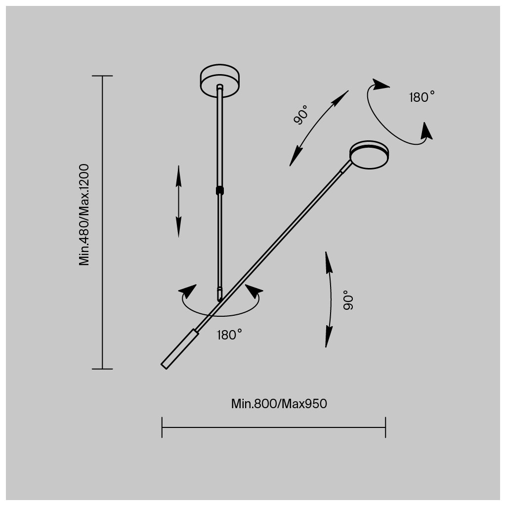 Možnost otáčení ramene až o 180° a naklopení až o 90°, možnost otáčení hlavy svítidla nezávisle na rameni až o 180° a naklopení až o 90°.