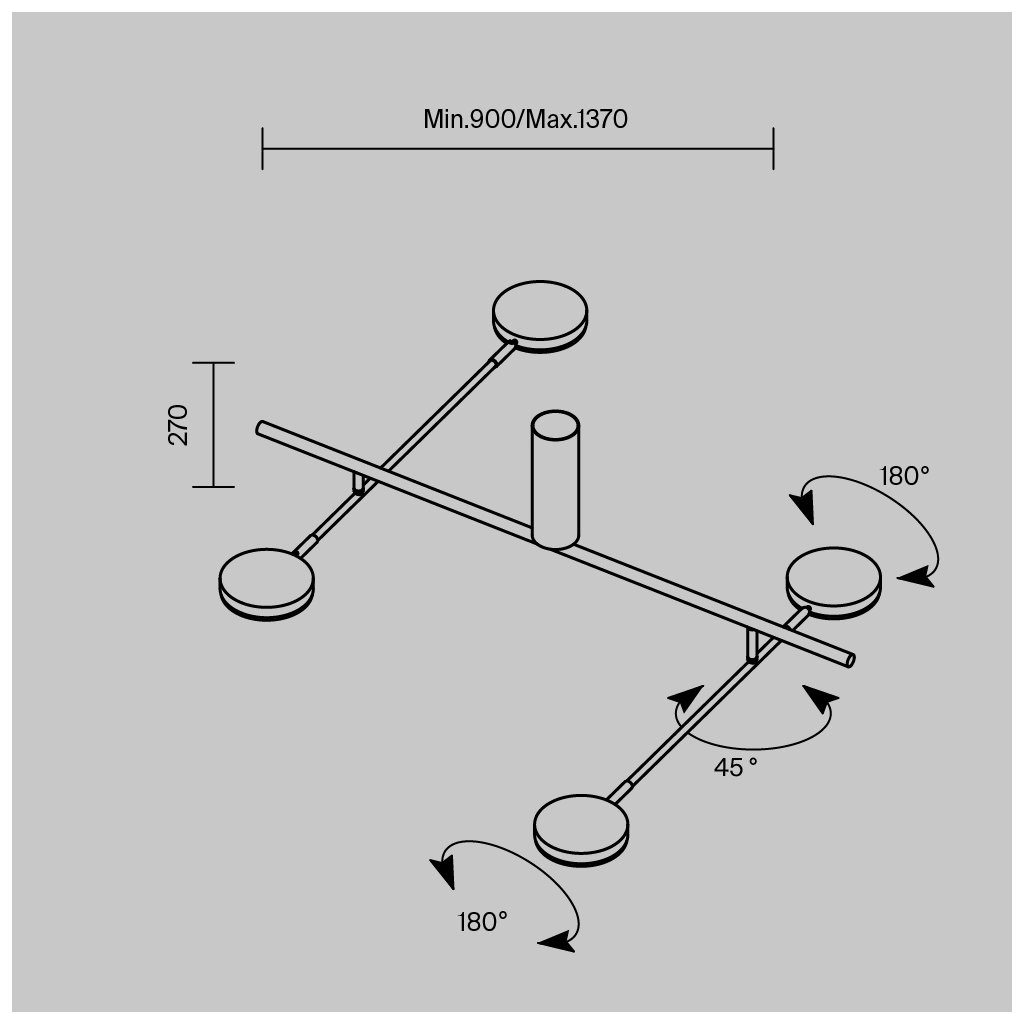 Možnost nezávislého otáčení každého z ramen až o 45°, možnost otáčení hlavy svítidla nezávisle na rameni až o 180°.