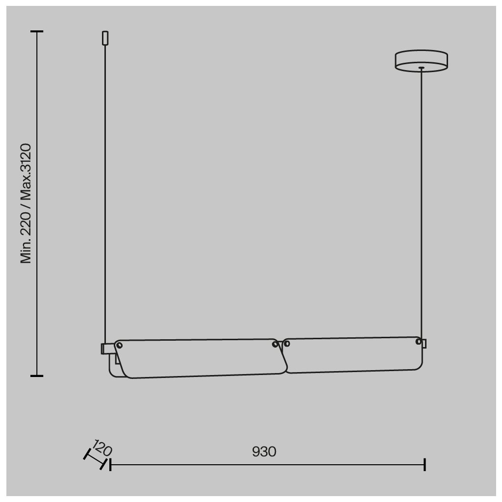 Součástí je stropní rozeta v barvě těla svítidla s rozměry ø140/40 mm a nastavitelný závěs, kdy je možné celkovou výšku svítidla nastavit mezi 220-3120 mm.
