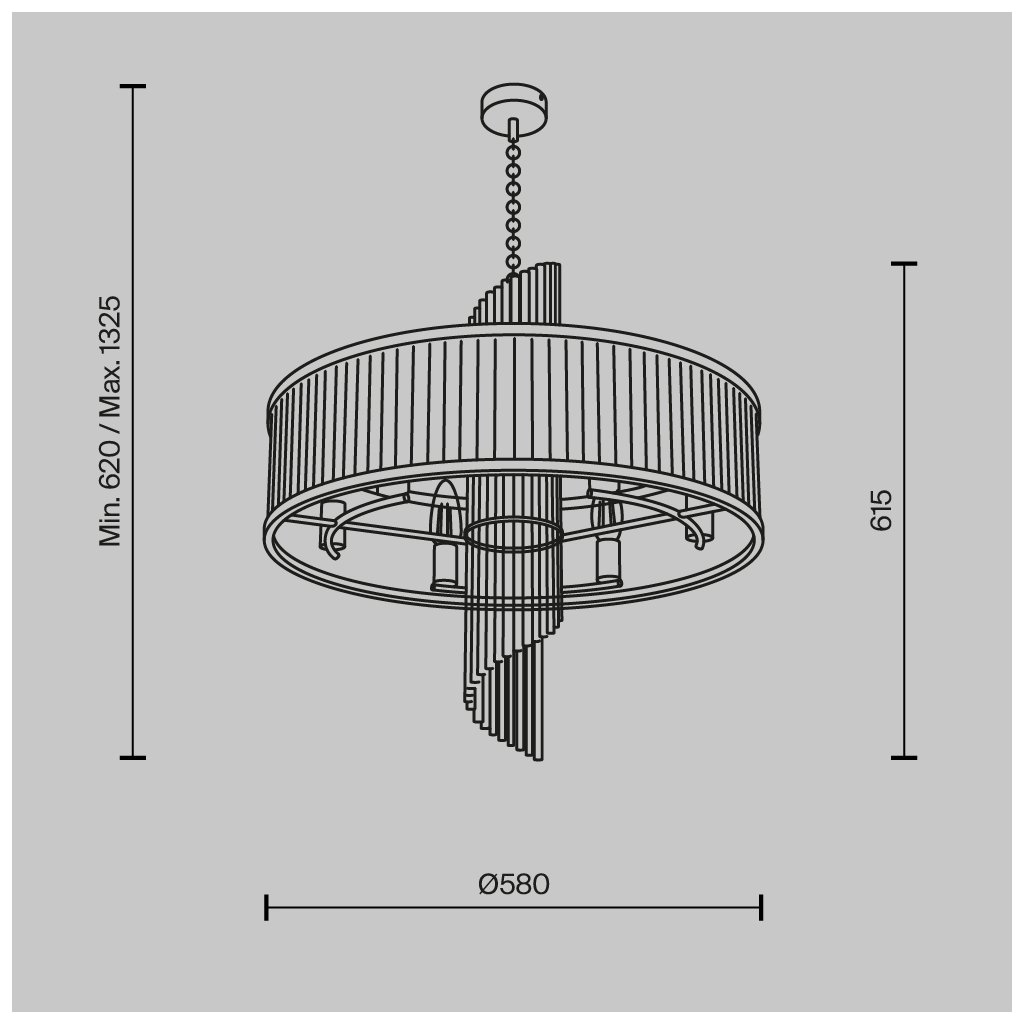 Rozměry svítidla jsou ø580/615 mm.