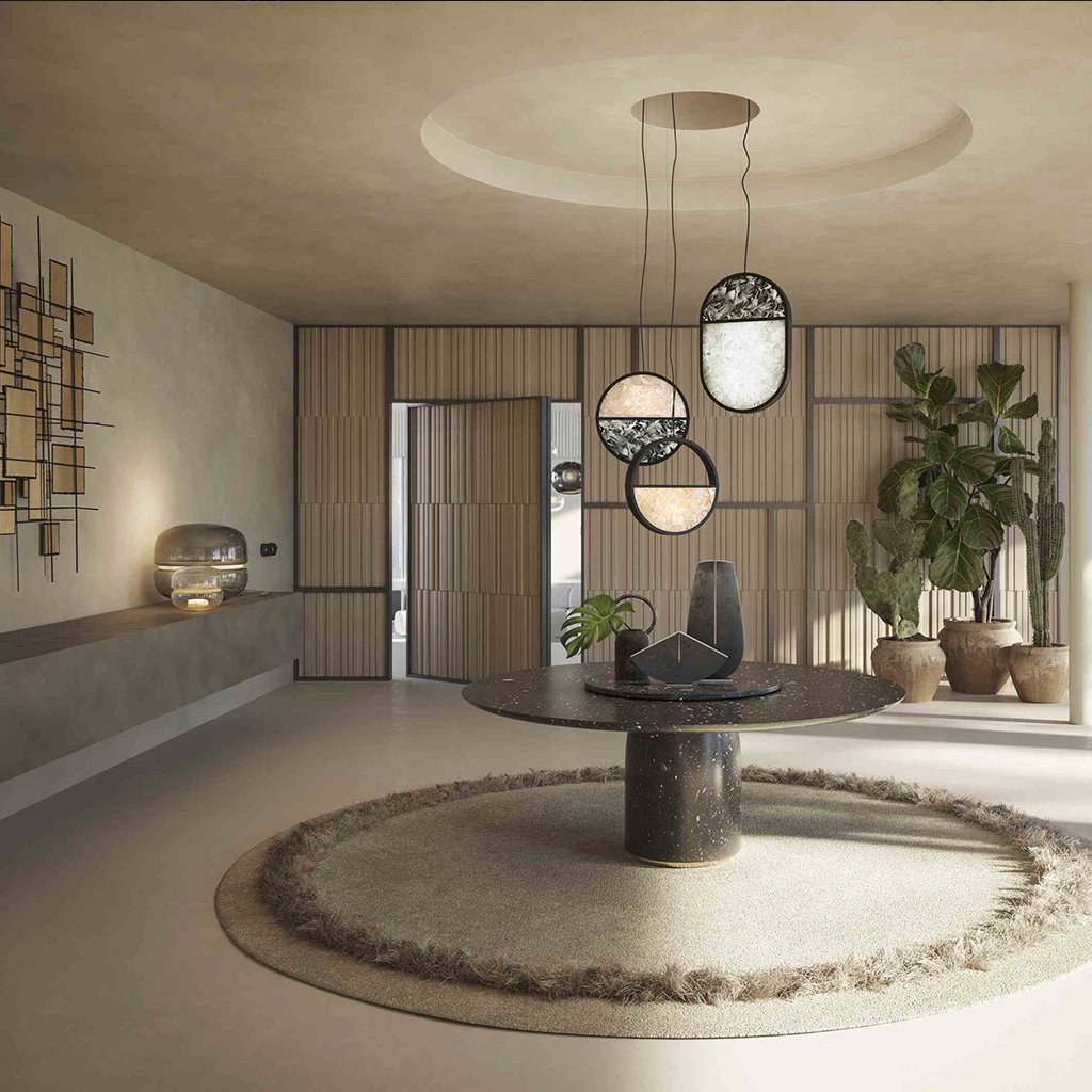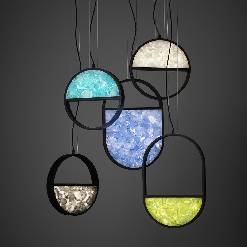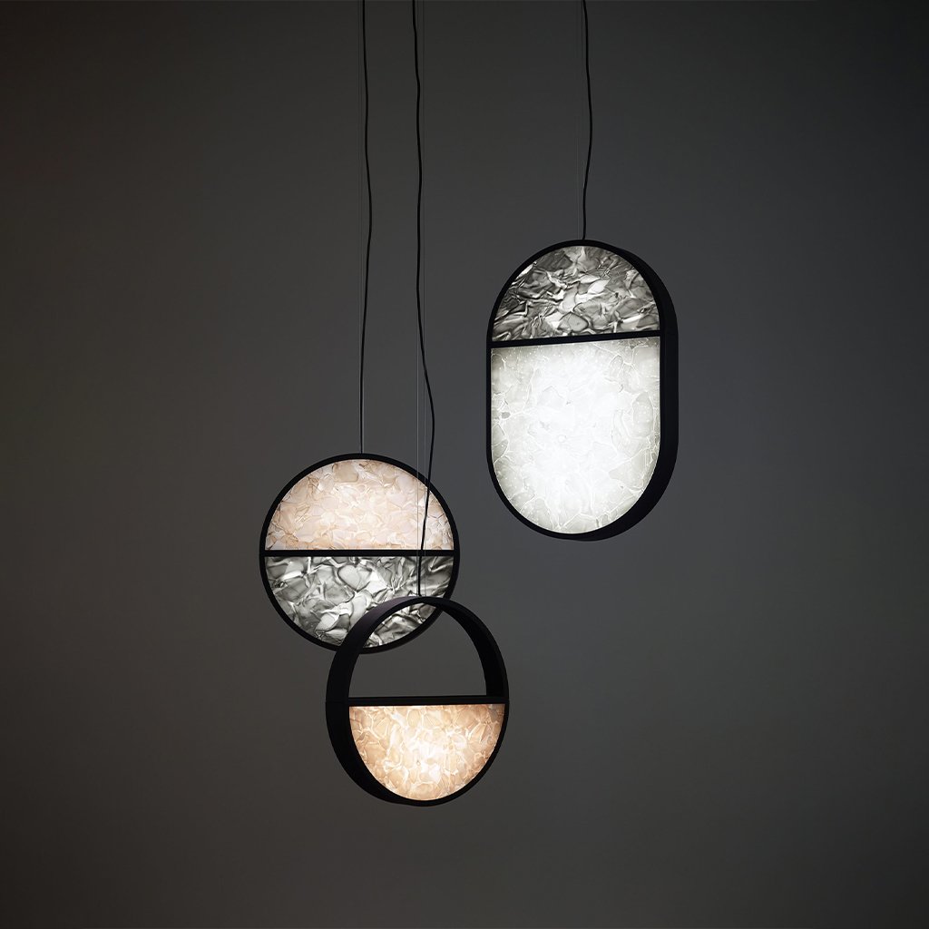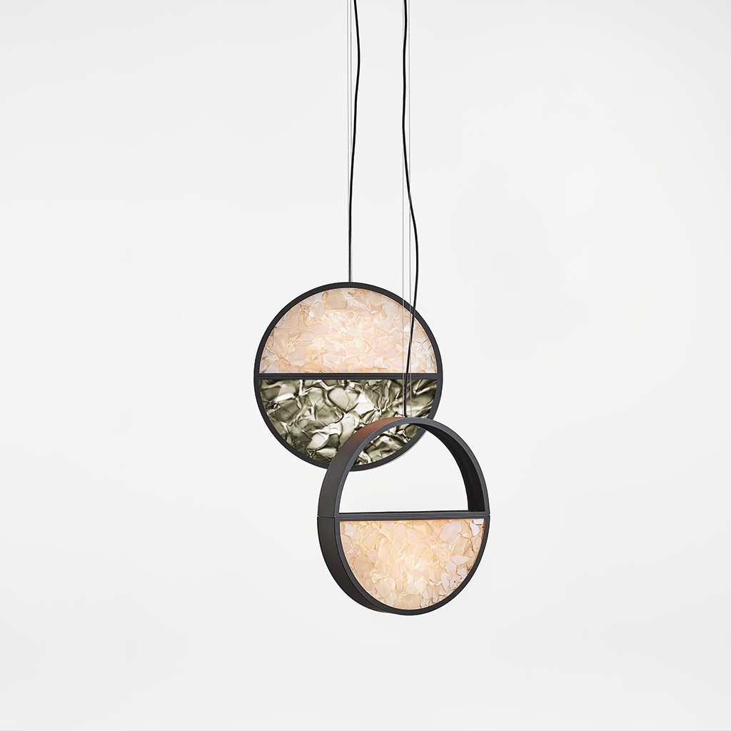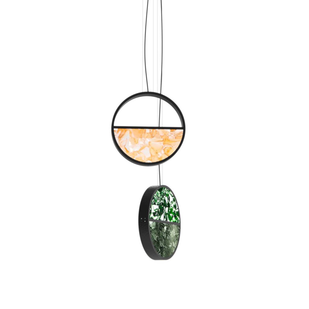- Zajímavé svítidlo Geometric Circle 1/2 Bottom akcentuje estetiku a strukturu skla BROKISGLASS, které je samo o sobě pozoruhodně výrazné. Toto svítidlo je definované jemnými základními geometrickými tvary ve výrazném kontrastu s živým, téměř sochařským, žíhaným sklem. Tento koncept překračuje svou primární funkci svítidla a otevírá se designovým a neobvyklým světelným kompozicím.