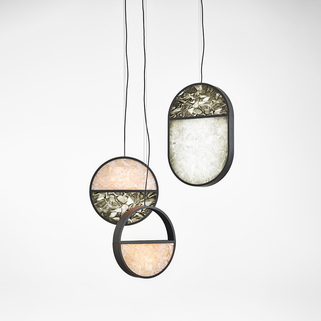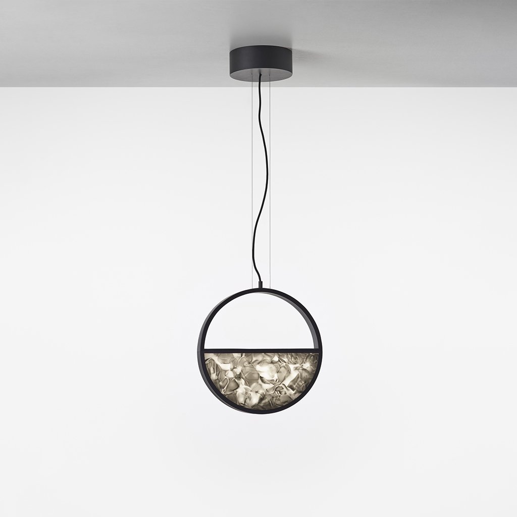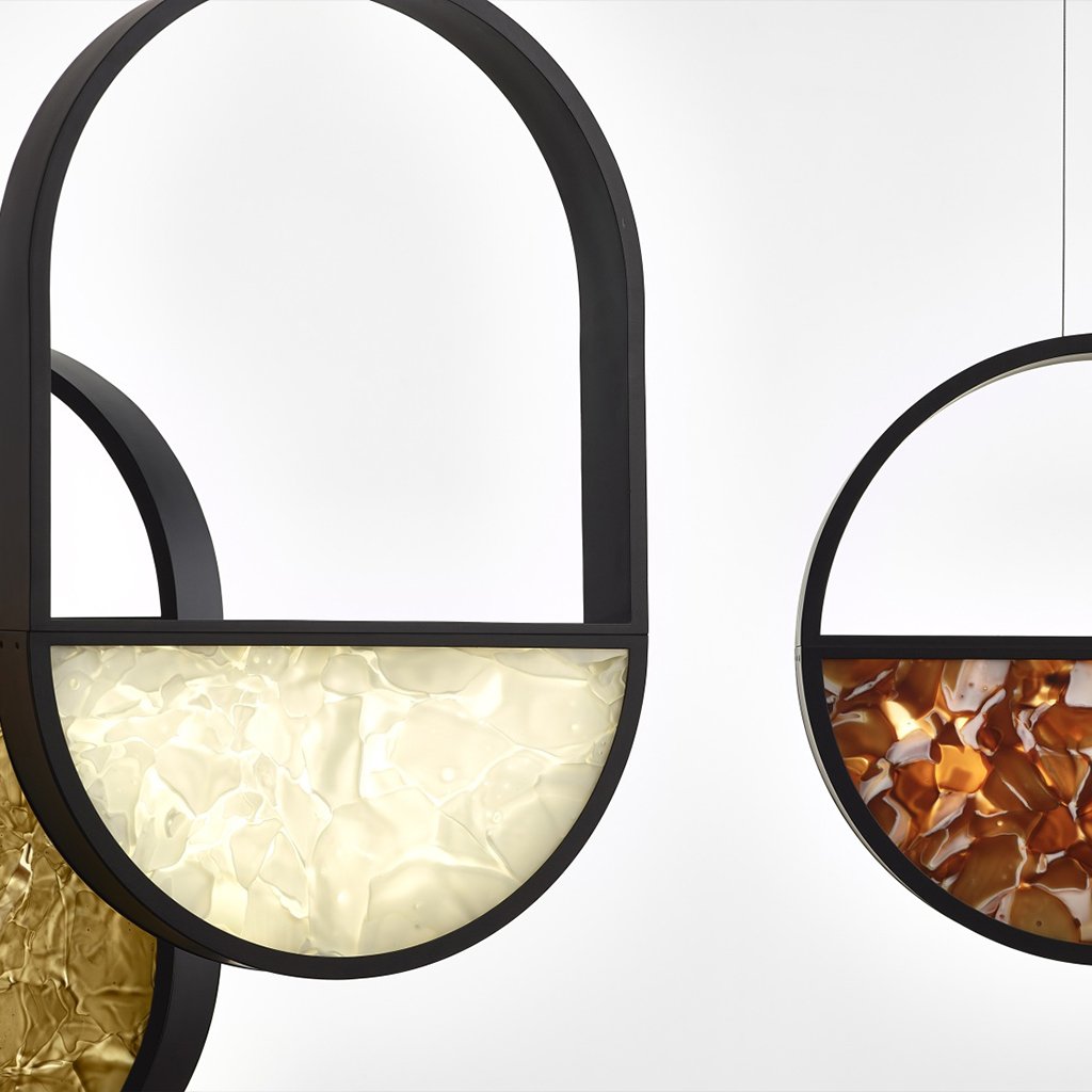 Zajímavé svítidlo Geometric Circle 1/2 Bottom akcentuje estetiku a strukturu skla BROKISGLASS, které je samo o sobě pozoruhodně výrazné. Toto svítidlo je definované jemnými základními geometrickými tvary ve výrazném kontrastu s živým, téměř sochařským, žíhaným sklem. Tento koncept překračuje svou primární funkci svítidla a otevírá se designovým a neobvyklým světelným kompozicím.