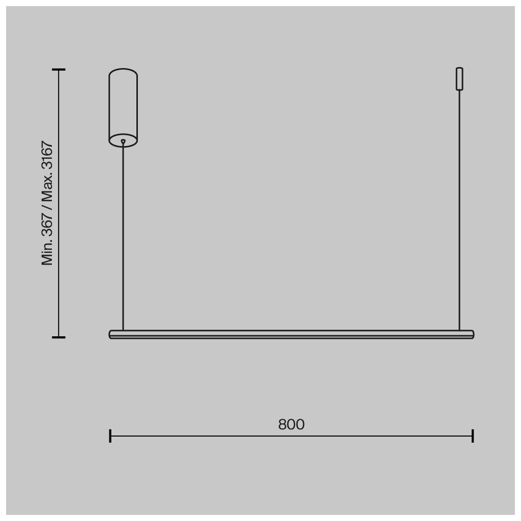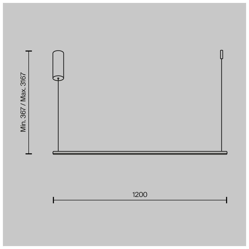 Součástí je stropní rozeta v barvě těla svítidla s rozměry ø60/150 mm, stropní úchyt a nastavitelný závěs s celkovou délkou až 3000 mm.