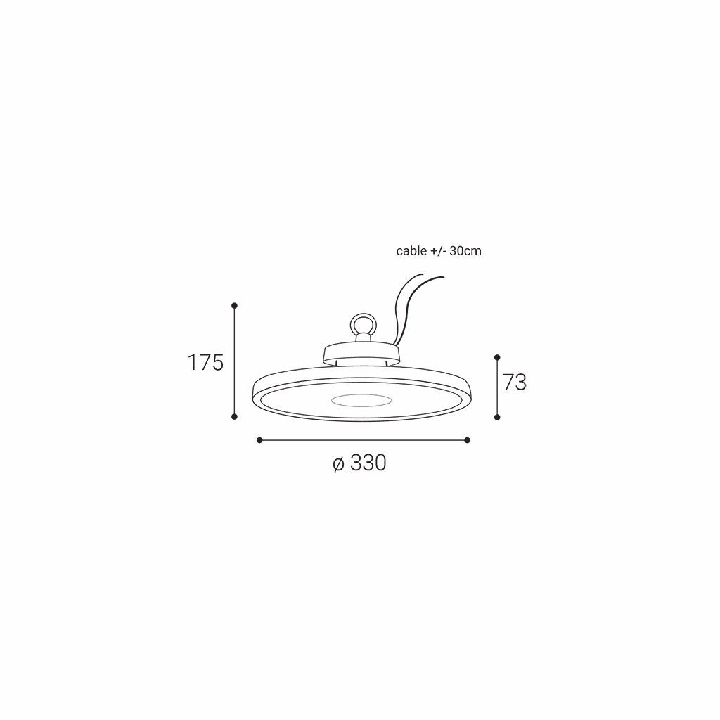 Rozměry svítidla jsou ø330/175 mm, součástí je asi 300 mm dlouhý napájecí kabel.