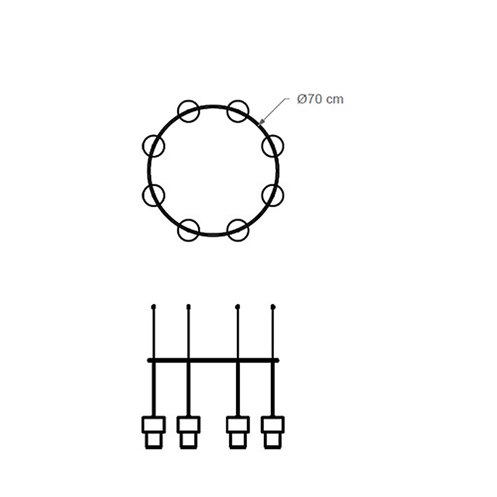 Průměr svítidla je 700 mm, rozměr jednotlivých svítidel je ø115/160 mm.