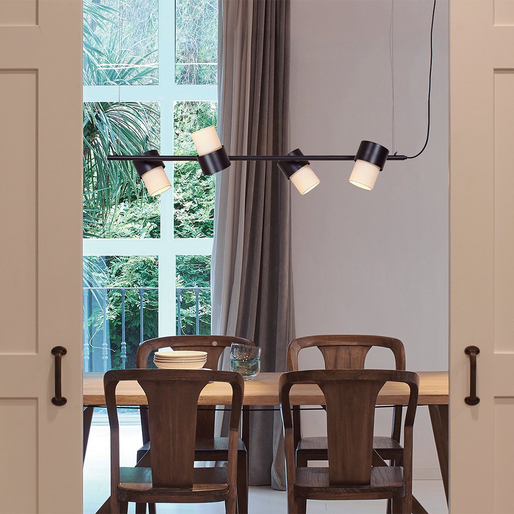 - Moderní designové závěsné svítidlo Kan Linear Articulado, založené na hře mezi vzájemně propojenými moduly z různých materiálů, vytváří kouzelný světelný efekt mezi oběma částmi. Ty se navzájem osvětlují a zastiňují, čímž navozují přátelskou a přívětivou atmosféru. Hlavní specialitou svítidla Kan Linear Articulado je možnosti orientovat každé stínidlo individuálně, což umožňuje vytvářet různá prostředí. Svítidlo Kan Linear Articulado překonává funkci jednoduchého dekorativního kusu a vytváří modulární systém nad stoly či pro luxusní restaurační, hotelové a komerční prostory.