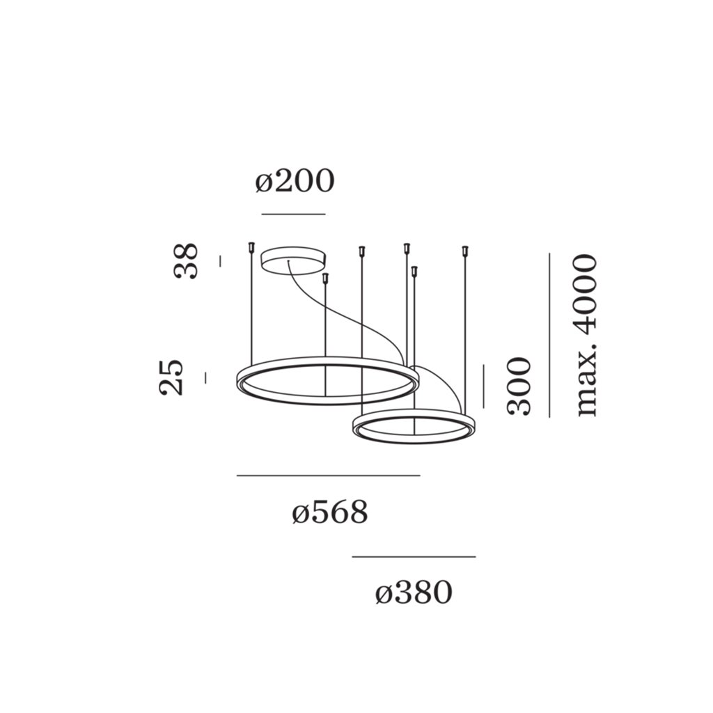 Designové svítidlo složené ze dvou závěsných kružnic Kujo 2.1 Designové svítidlo složené ze dvou závěsných kružnic Kujo 2.1