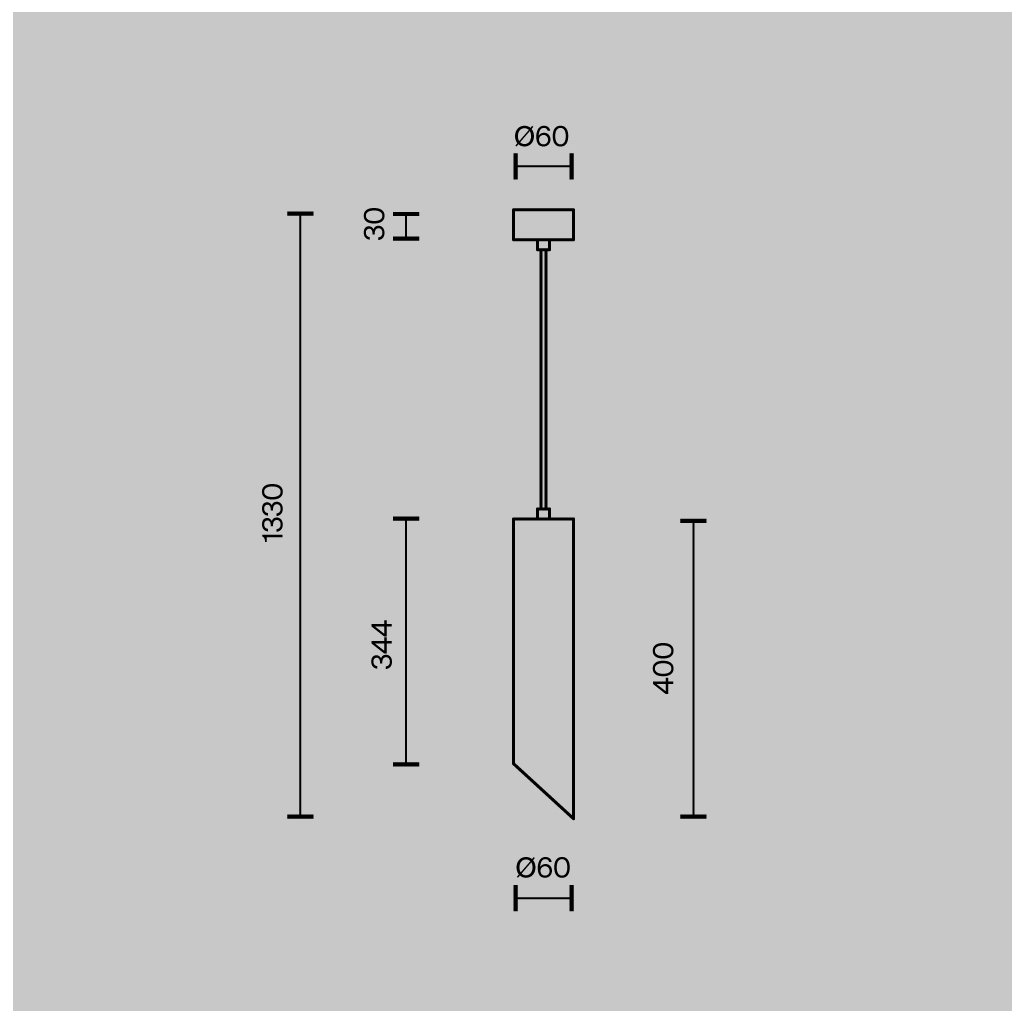 Svítidlo je dostupné ve dvou rozměrech - ø60/300 mm a ø60/400 mm.
