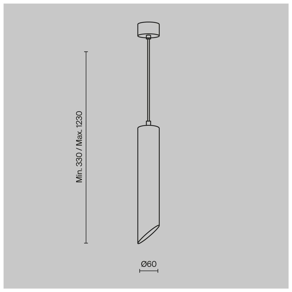 Součástí je stropní válcová rozeta v barvě svítidla s rozměry ø60/30 mm a nastavitelný závěs s délkou až 900 mm.