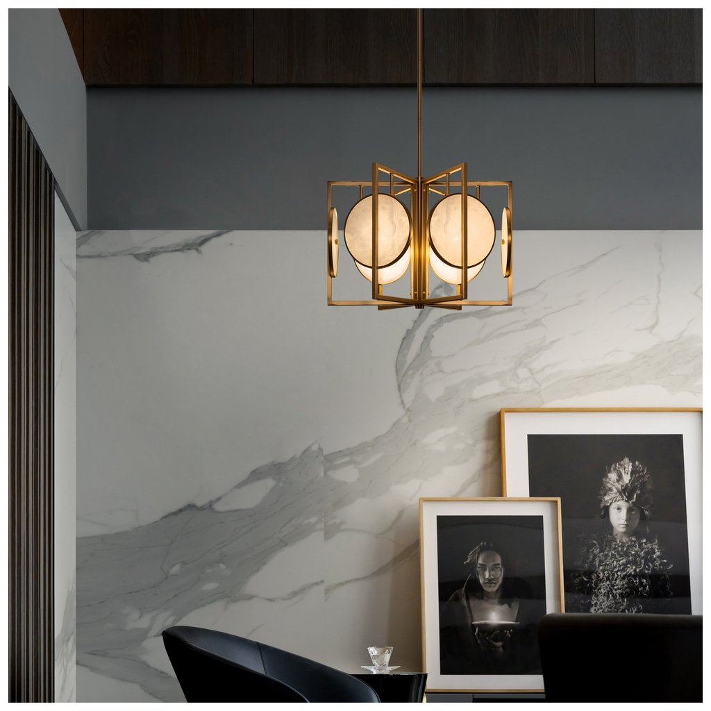 Luxusní svěšené svítidlo Marmo ztělesňuje čistotu a velkolepost mramoru. Skrytý zdroj světla zdůrazňuje přírodní strukturu kamene, čímž vytváří dynamické a živé osvětlení. Přísné obdélníkové kovové linie v kontrastu s elegantními kulatými mramorovými disky proměňují toto svítidlo v opravdové umělecké dílo. Elegantní svítidlo Marmo se dokonale hodí do minimalistických i klasických interiérů, kde dodá hloubku a sofistikovanost a poslouží nejen jako zdroj osvětlení, ale také jako zajímavá dekorace.