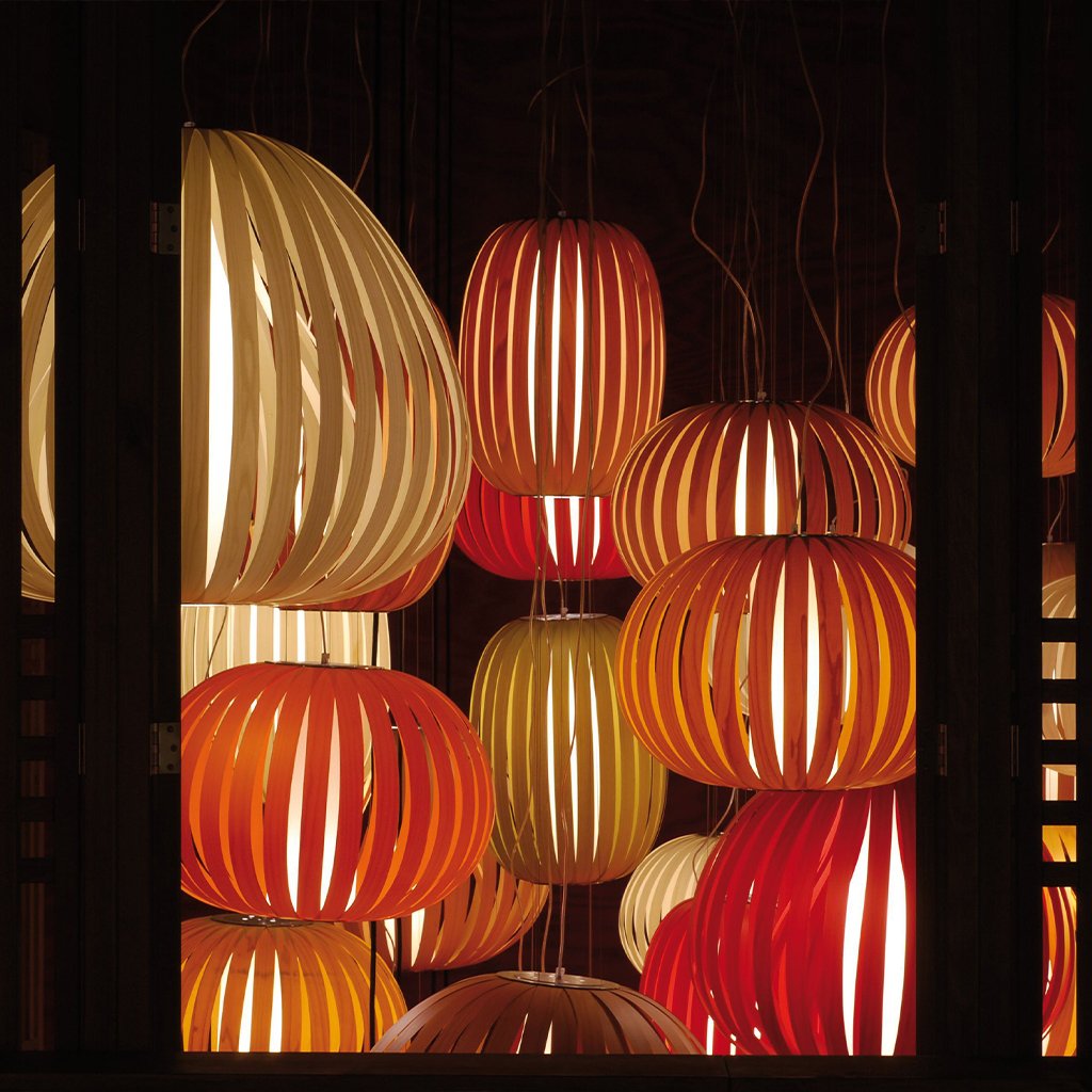 Oválné svěšené svítidlo Poppy čerpá inspiraci z ladných tvarů makovic. Svítidlo je tvořeno řadami dřevěných dýhových proužků, které propouští světlo a svítidlo díky tomu doslova jiskří. Moderní dřevěné svítidlo Poppy má vyzrálý tvar s plně vyvinutou formou, která dodává sílu a eleganci jeho jemnému designu. Svítidlo zaujme samo nad jídelním stolem či jako solitér v jakékoli místnosti, perfektně ale funguje ve vzájemné souhře se svítidly Pod, se kterými jsou schopna vytvářet působivé světelné instalace připomínající mraky.