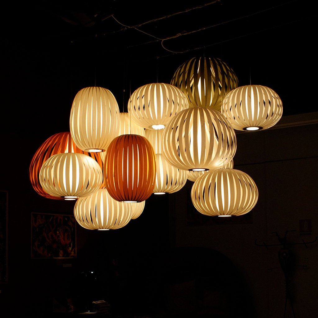 - Oválné svěšené svítidlo Poppy čerpá inspiraci z ladných tvarů makovic. Svítidlo je tvořeno řadami dřevěných dýhových proužků, které propouští světlo a svítidlo díky tomu doslova jiskří. Moderní dřevěné svítidlo Poppy má vyzrálý tvar s plně vyvinutou formou, která dodává sílu a eleganci jeho jemnému designu. Svítidlo zaujme samo nad jídelním stolem či jako solitér v jakékoli místnosti, perfektně ale funguje ve vzájemné souhře se svítidly Pod, se kterými jsou schopna vytvářet působivé světelné instalace připomínající mraky.