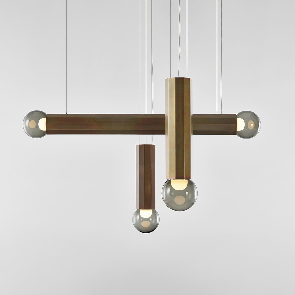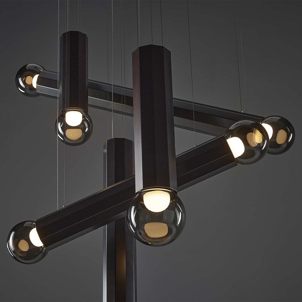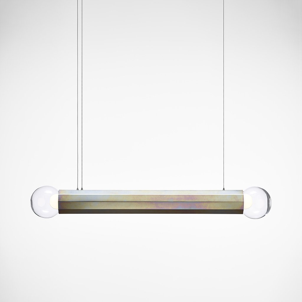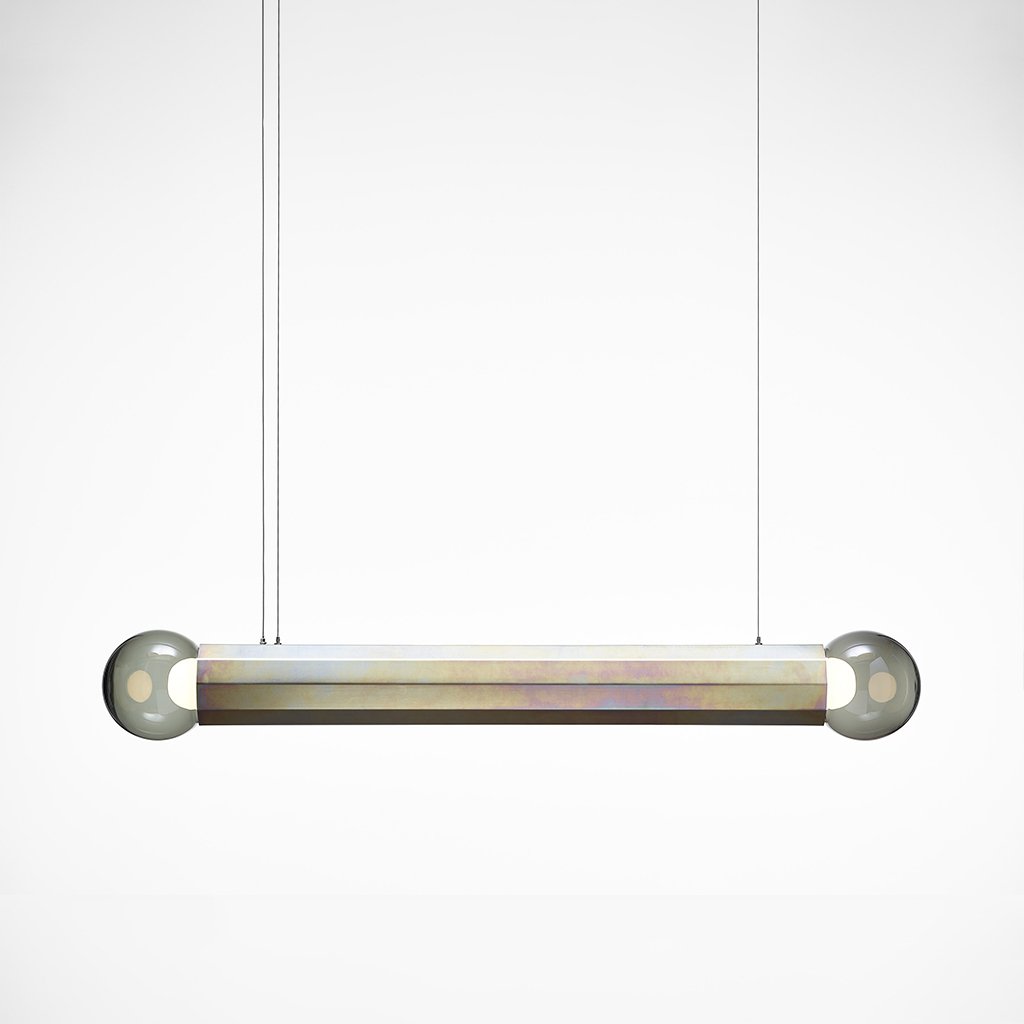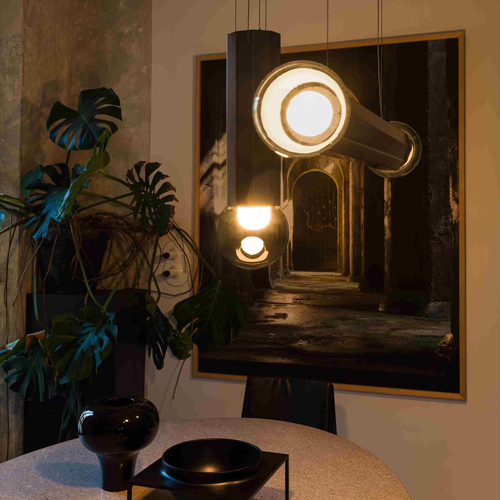 Extravagantní kovové svítidlo Prisma Double Large kombinuje klasické ručně foukané skleněné koule s robustním desetibokým kovovým hranolem s nápadným povrchem. Svítidlo je tak odvážným uměleckým objektem, který je ideální do jedinečných světelných kompozic. Krásné svěšené svítidlo Prisma Double Large představuje klenot, kterým lze ozdobit jídelní stoly v soukromých interiérech, ale i kanceláře, obchody, bary, hotely a restaurace.