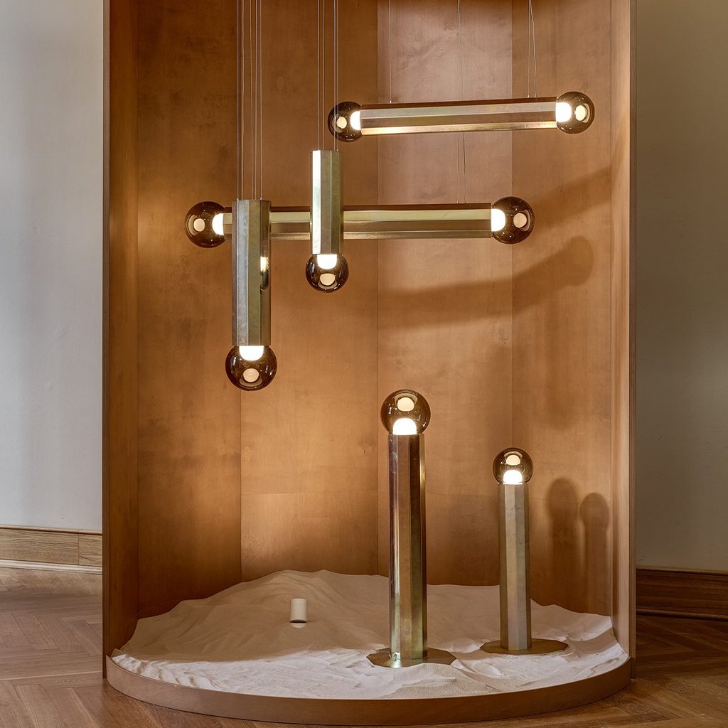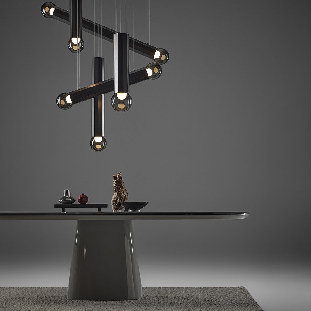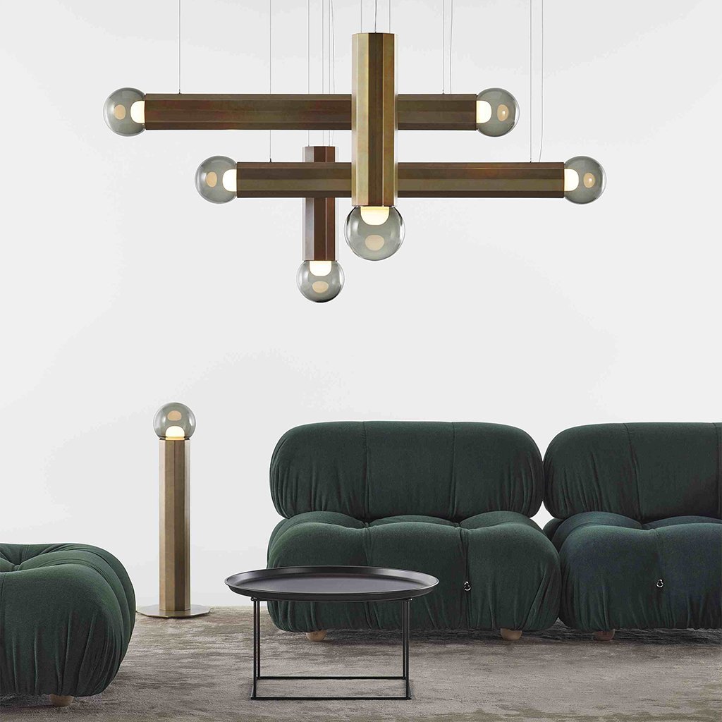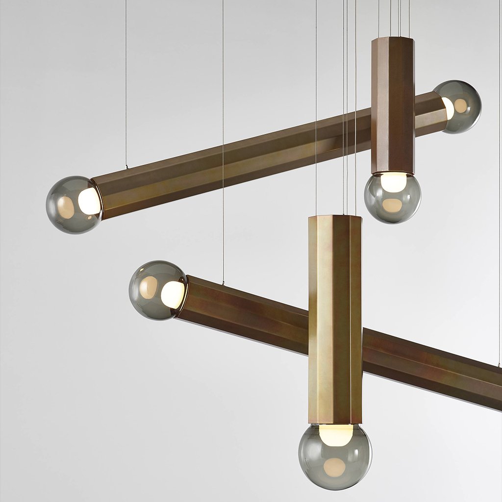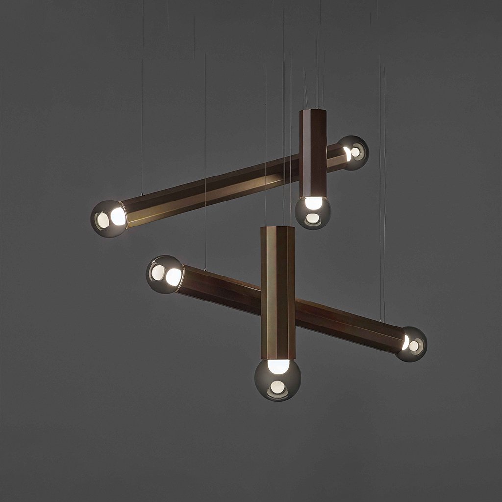Extravagantní kovové svítidlo Prisma Double Large kombinuje klasické ručně foukané skleněné koule s robustním desetibokým kovovým hranolem s nápadným povrchem. Svítidlo je tak odvážným uměleckým objektem, který je ideální do jedinečných světelných kompozic. Krásné svěšené svítidlo Prisma Double Large představuje klenot, kterým lze ozdobit jídelní stoly v soukromých interiérech, ale i kanceláře, obchody, bary, hotely a restaurace.