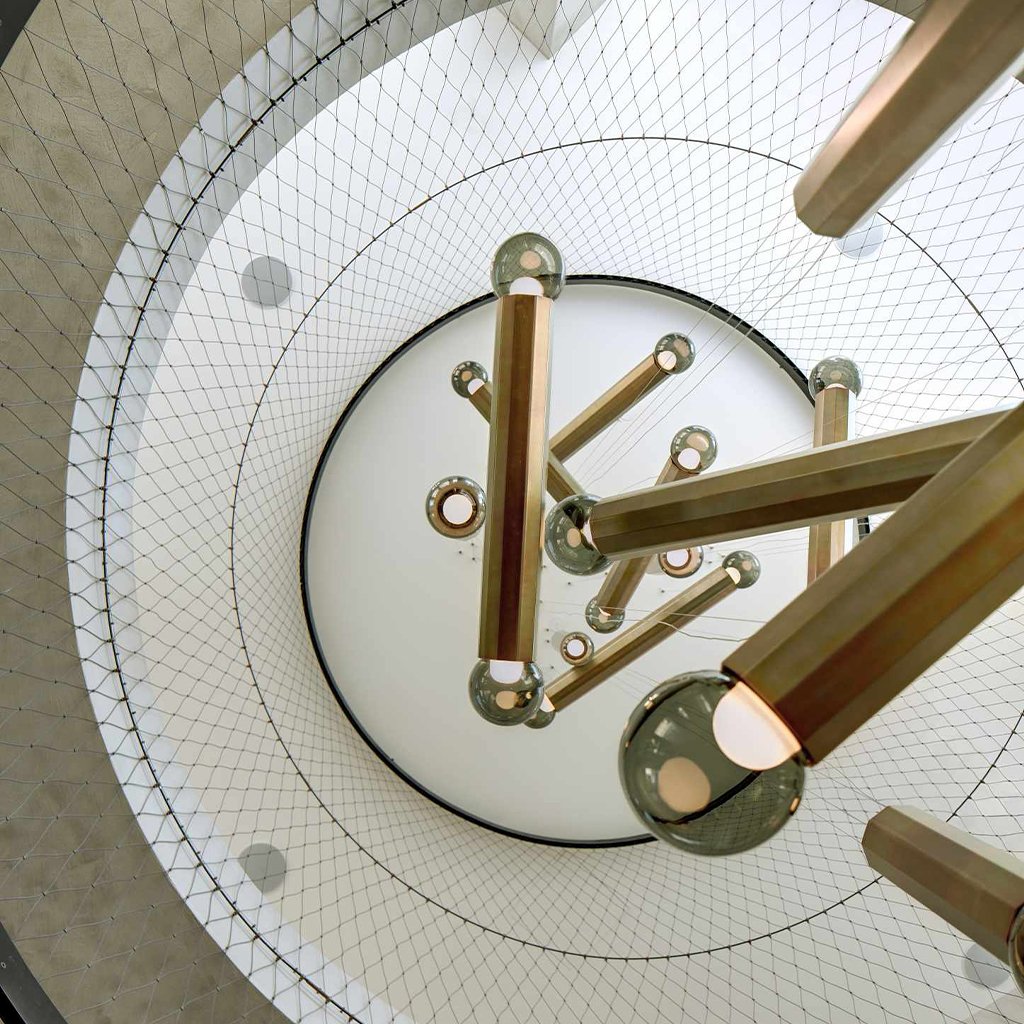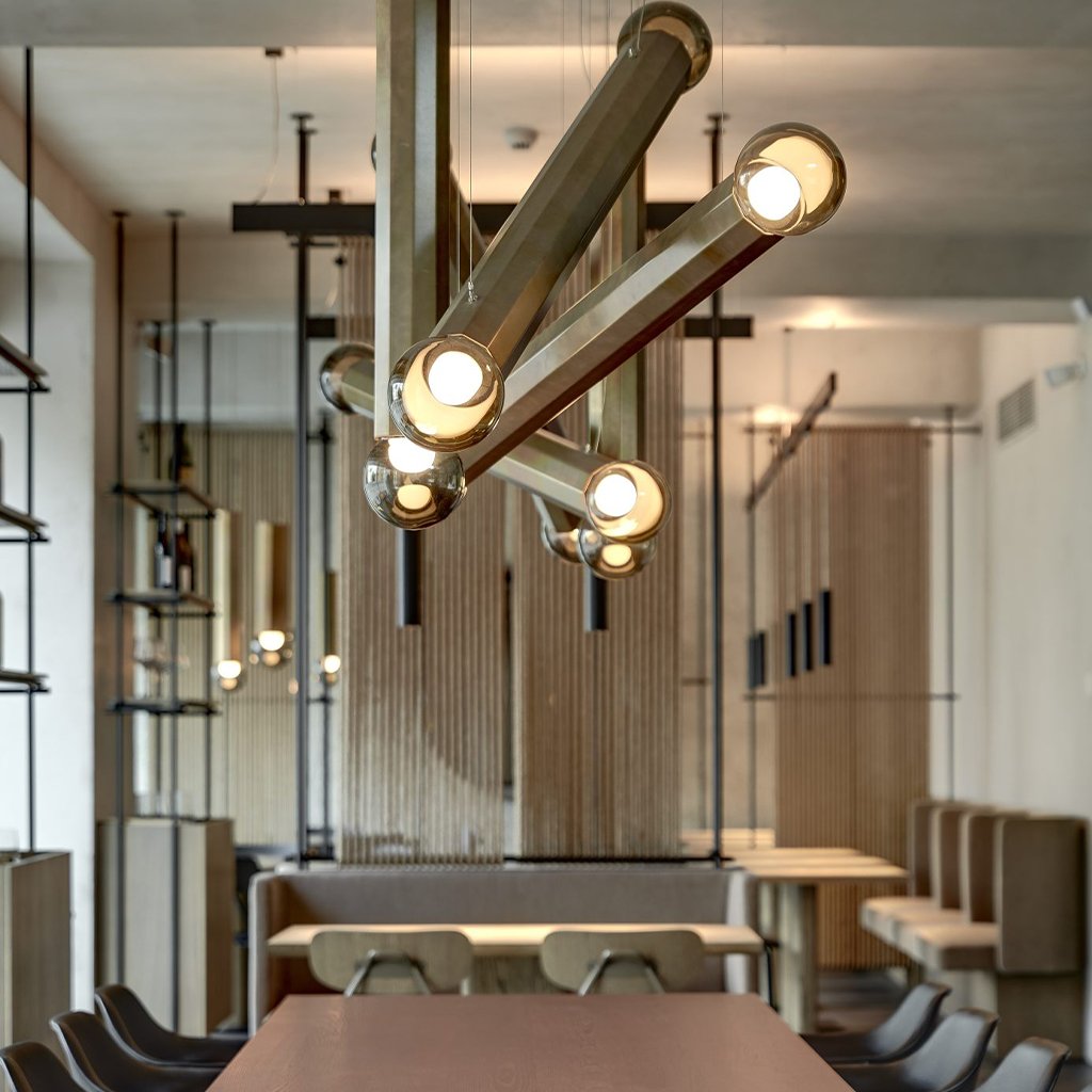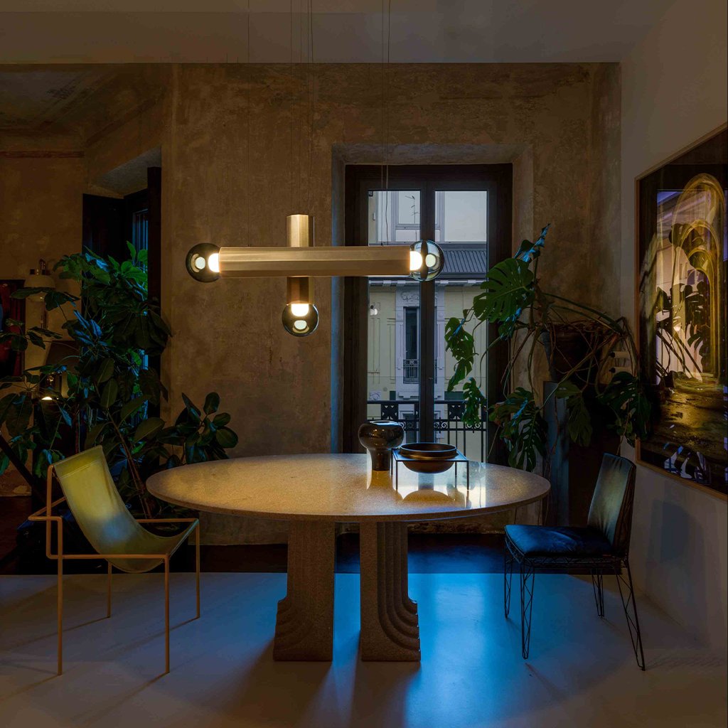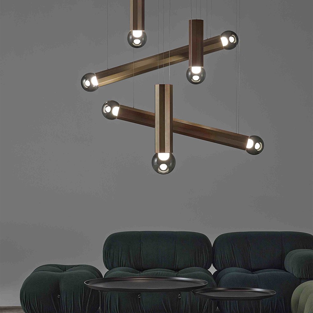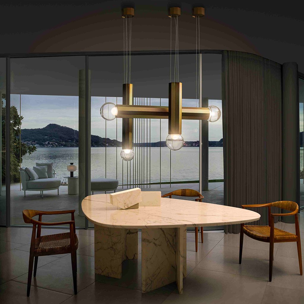 Extravagantní kovové svítidlo Prisma Double Large kombinuje klasické ručně foukané skleněné koule s robustním desetibokým kovovým hranolem s nápadným povrchem. Svítidlo je tak odvážným uměleckým objektem, který je ideální do jedinečných světelných kompozic. Krásné svěšené svítidlo Prisma Double Large představuje klenot, kterým lze ozdobit jídelní stoly v soukromých interiérech, ale i kanceláře, obchody, bary, hotely a restaurace.