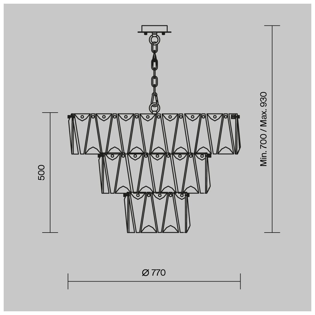 Osmnáct patic E14 pro vyměnitelné žárovky pro variantu s ø770 mm. (Žárovky nejsou součástí balení.)