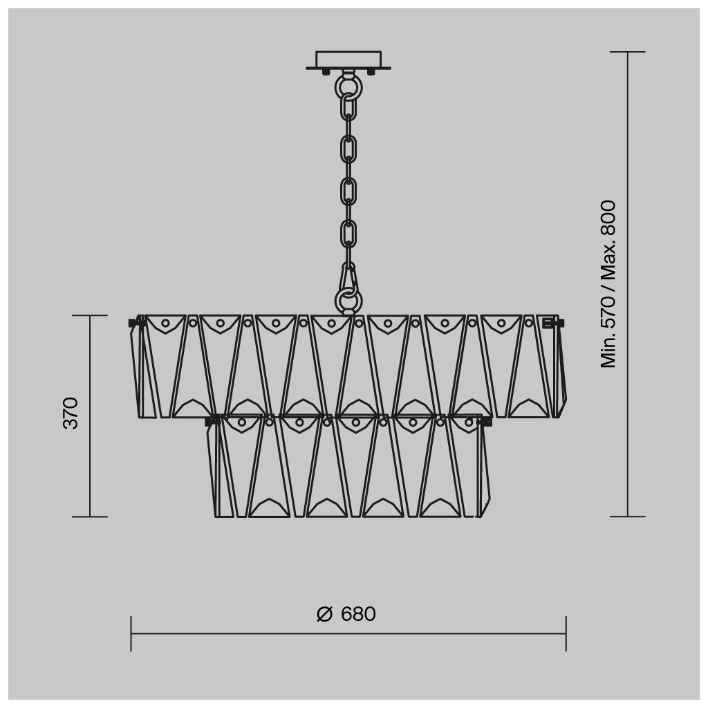 Dvanáct patic E14 pro vyměnitelné žárovky pro variantu s ø680 mm. (Žárovky nejsou součástí balení.)