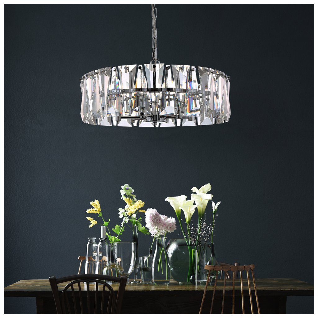 Skleněný stropní lustr Puntes ztělesňuje sofistikovanost a eleganci s moderním nádechem. Jádrem tohoto svítidla jsou masivní broušené krystaly, které vytvářejí okouzlující hru světla. Toto unikátní svítidlo díky svému nepřehlédnutelnému vzhledu přinese luxus, exkluzivitu a příjemnou atmosféru do jakéhokoli komerčního či soukromého interiéru, nejvhodnější je však do různých vstupních místností, schodišť, restaurací, chodeb či salónků s vysokými stropy.