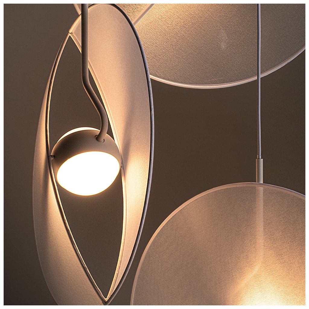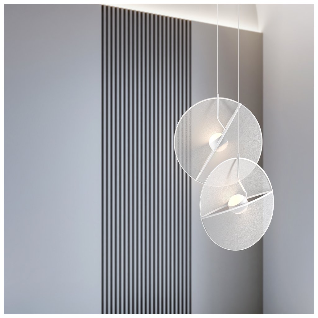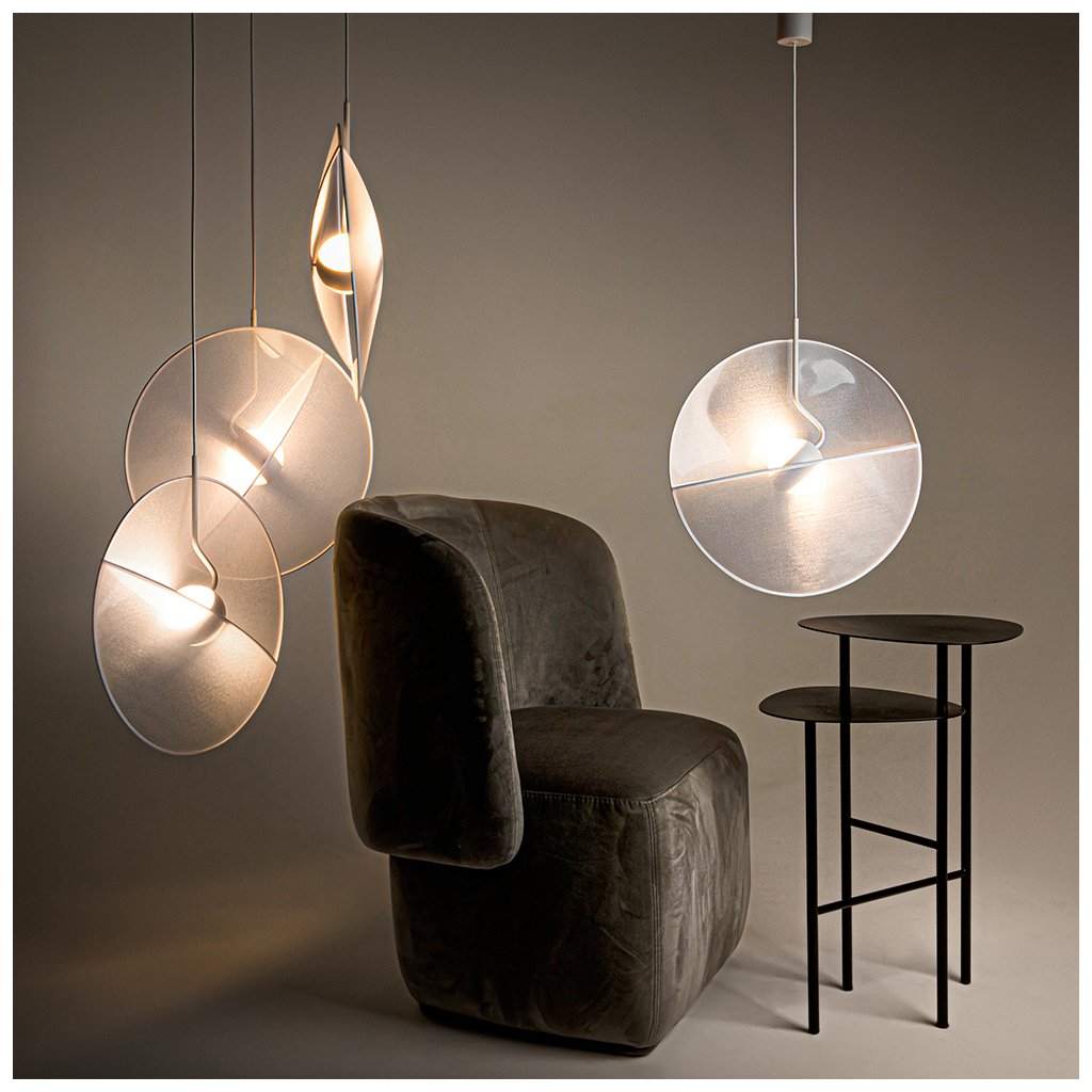 Jedinečné svěšené svítidlo Reflex se inspiruje renesančními umělci, kteří jako první odhalili tajemství odraženého světla a všestrannosti textur. Kulaté sférické stínidlo protíná průsvitný látkový disk jako slunce vycházející nad vodou a propouští příjemné jemné světlo. Toto vizuálně poutavé svítidlo je ideální pro moderní prostory v minimalistickém, skandinávském, hi-tech a fusion stylu.