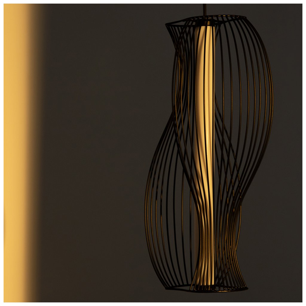 Plastické závěsné svítidlo Shadows of the Past je jedinečným kouskem, který se věnuje kulturnímu dědictví a pohrává si u toho se světlem a stíny. Inspirace tradiční řeckou keramikou se odráží v propracované siluetě z asymetrických drátěných prvků, což svítidlu dodává radikálně moderní a designovou estetiku.