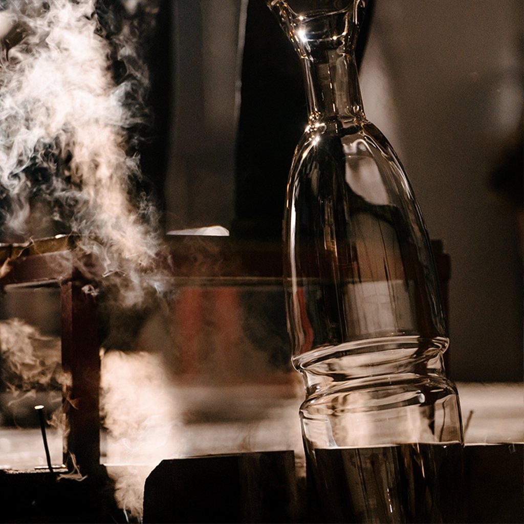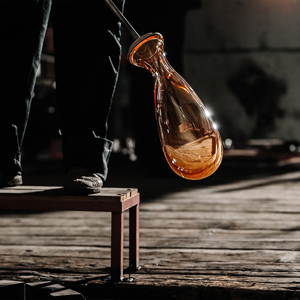 Svítidlo je vyrobeno z ručně foukaného skla.