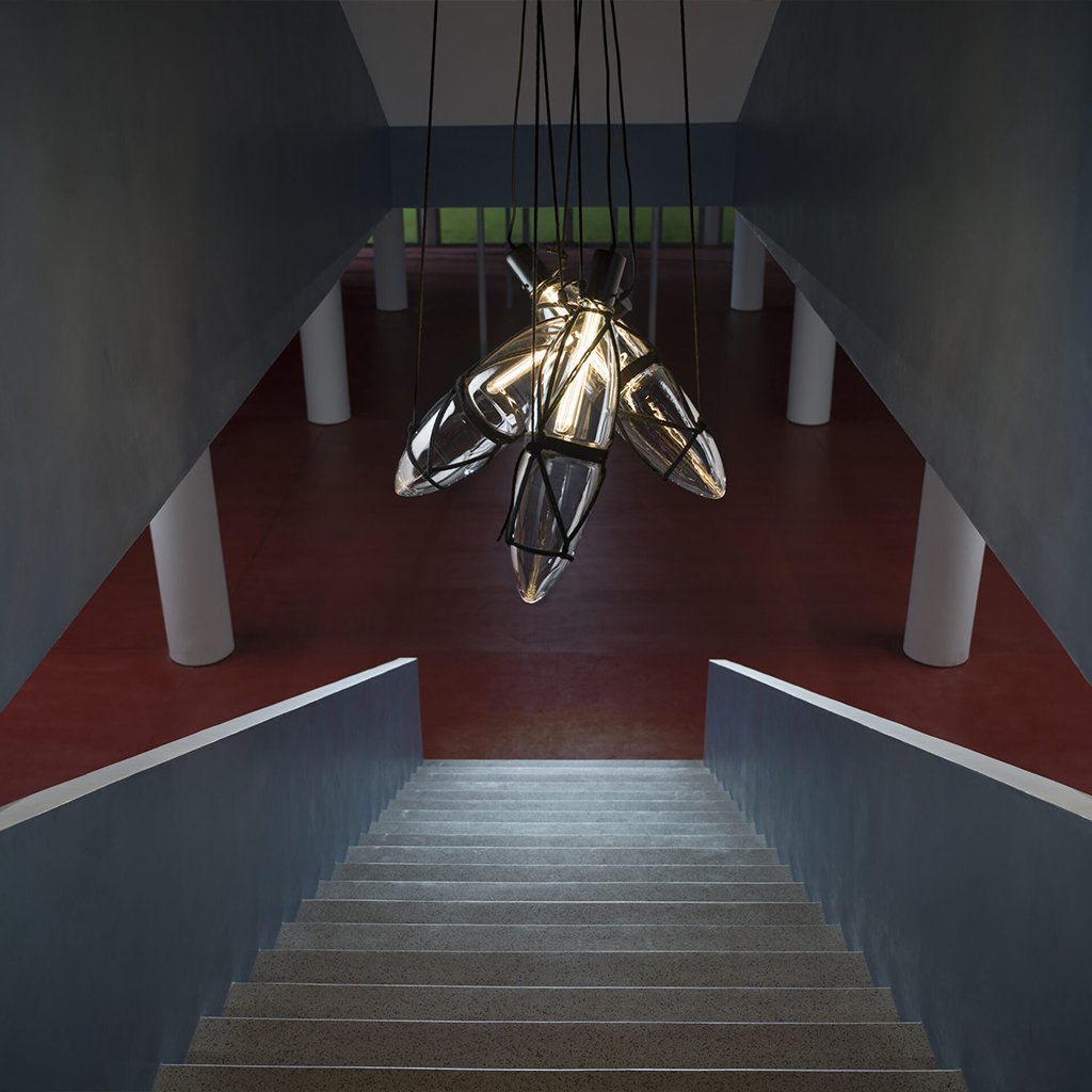 Toto rafinované svítidlo z ručně foukaného křišťálového skla uvězněného v pevné síti uzlů vytváří variabilní kompozice, které jednoznačně upoutají i Vaši pozornost. Díky odvážné estetice může být Shibari 1 právem považováno za umělecký objekt, ať už jako solitér nebo jako seskupení připomínající sochařské dílo.