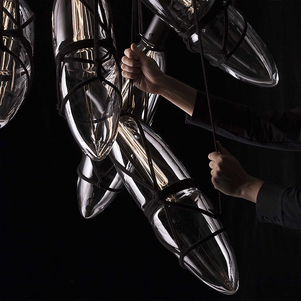 - Toto rafinované svítidlo z ručně foukaného křišťálového skla uvězněného v pevné síti uzlů vytváří variabilní kompozice, které jednoznačně upoutají i Vaši pozornost. Díky odvážné estetice může být Shibari 1 právem považováno za umělecký objekt, ať už jako solitér nebo jako seskupení připomínající sochařské dílo.