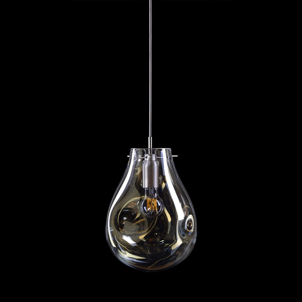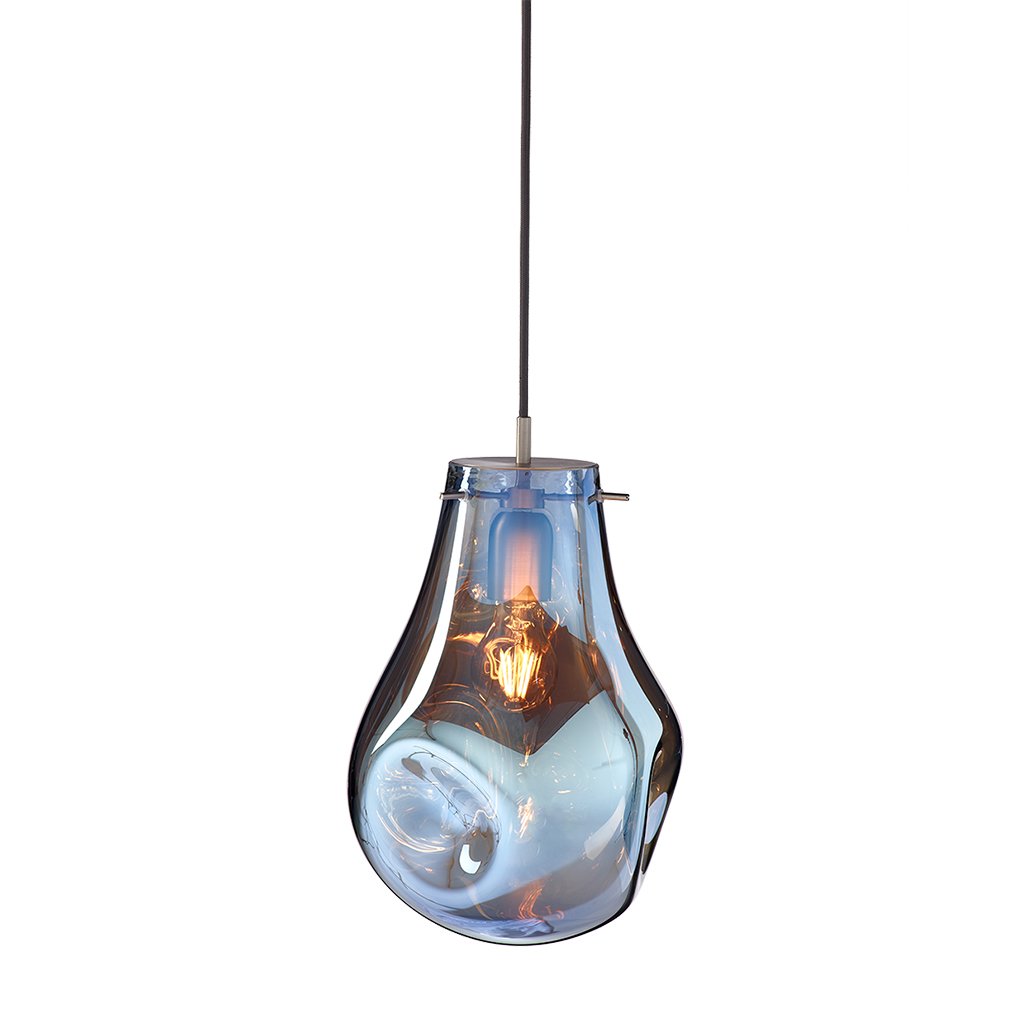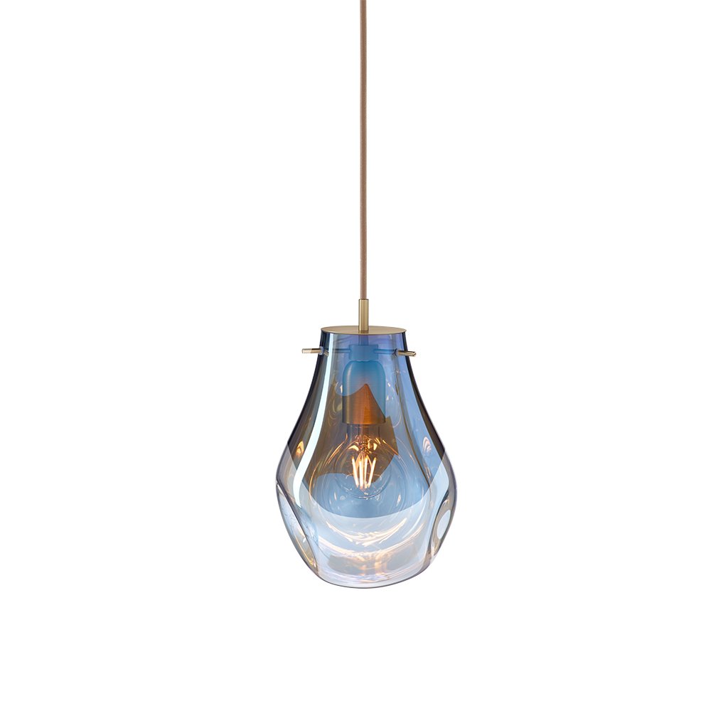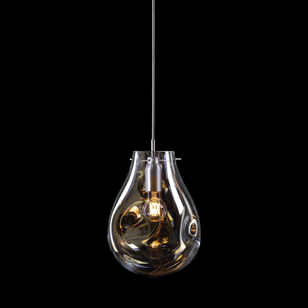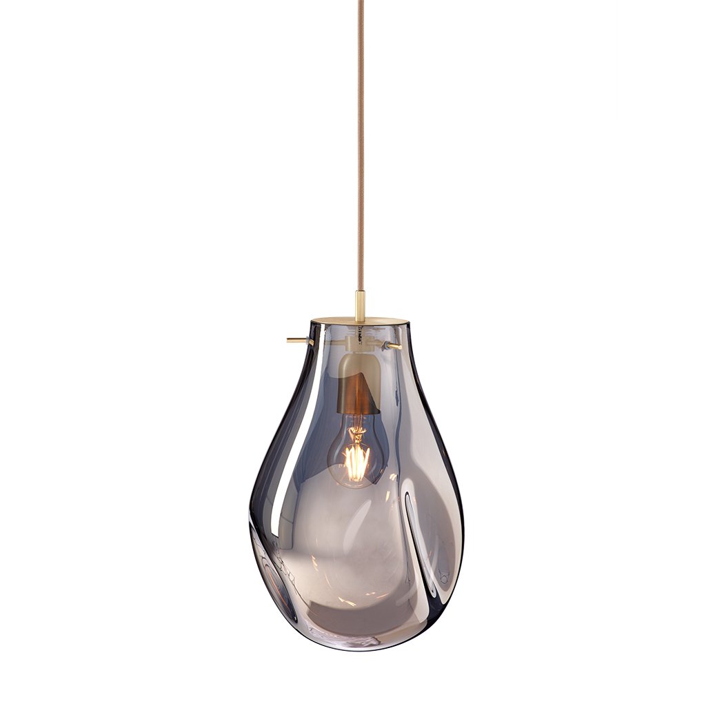 Svítidlo je vyrobeno z ručně foukaného skla a kovu.