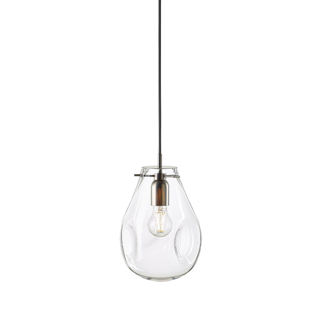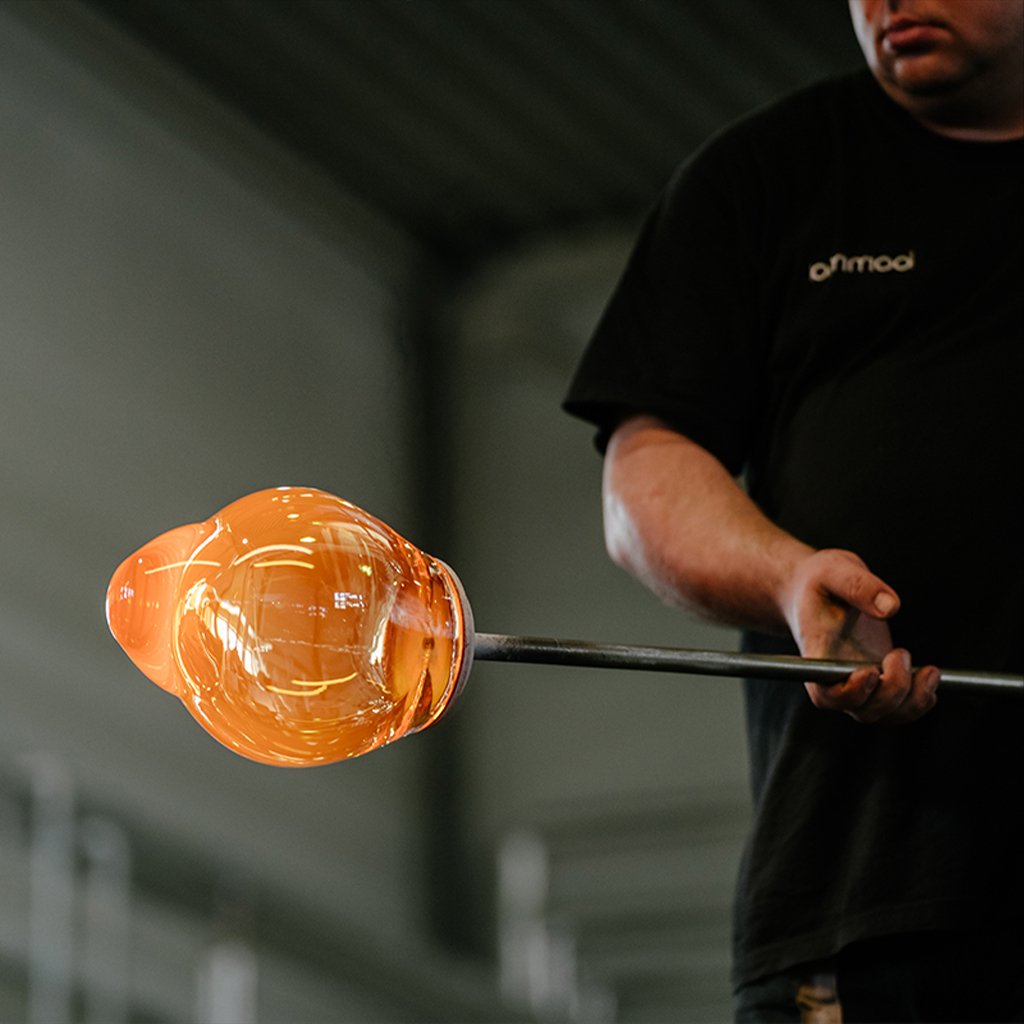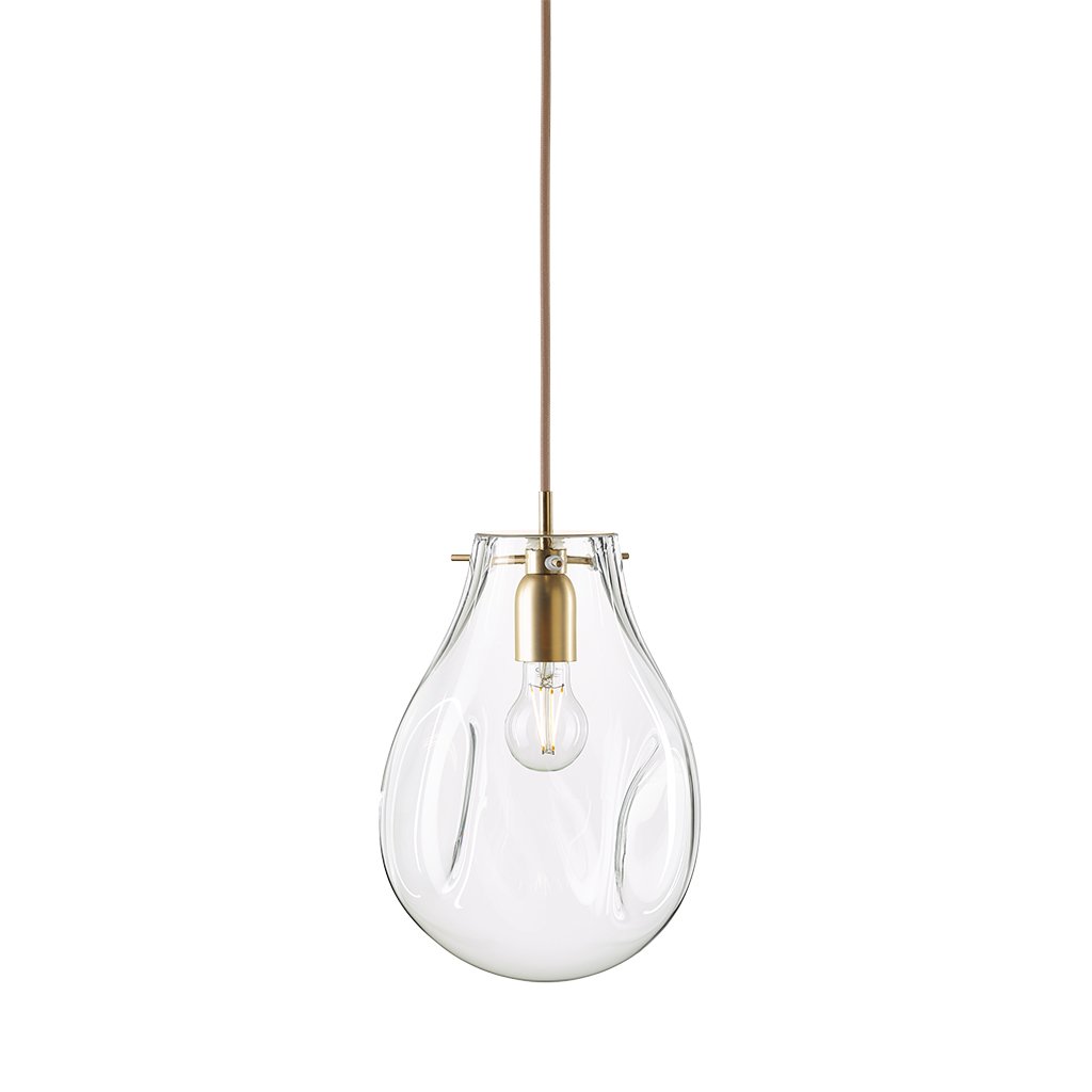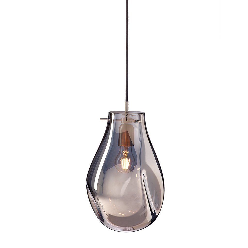 Svítidlo je vyrobeno z ručně foukaného skla a kovu.