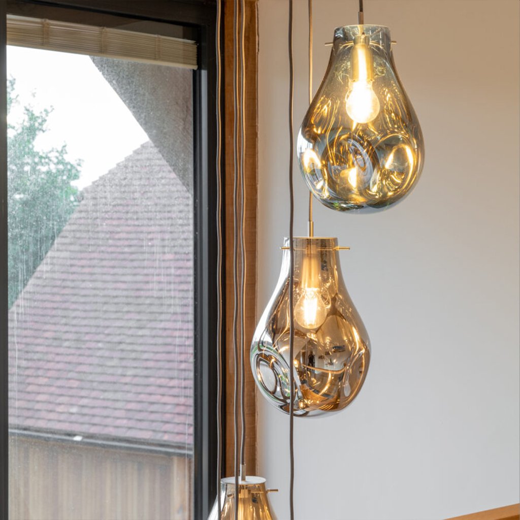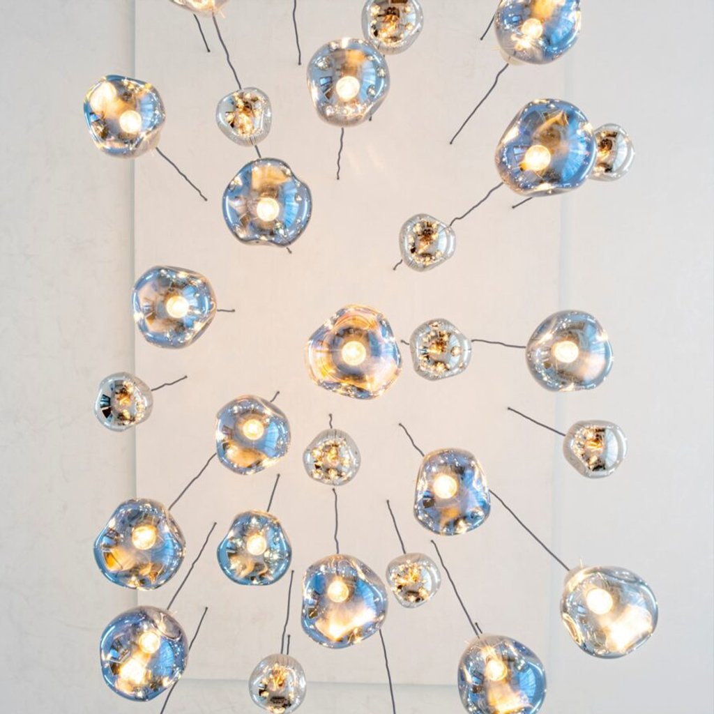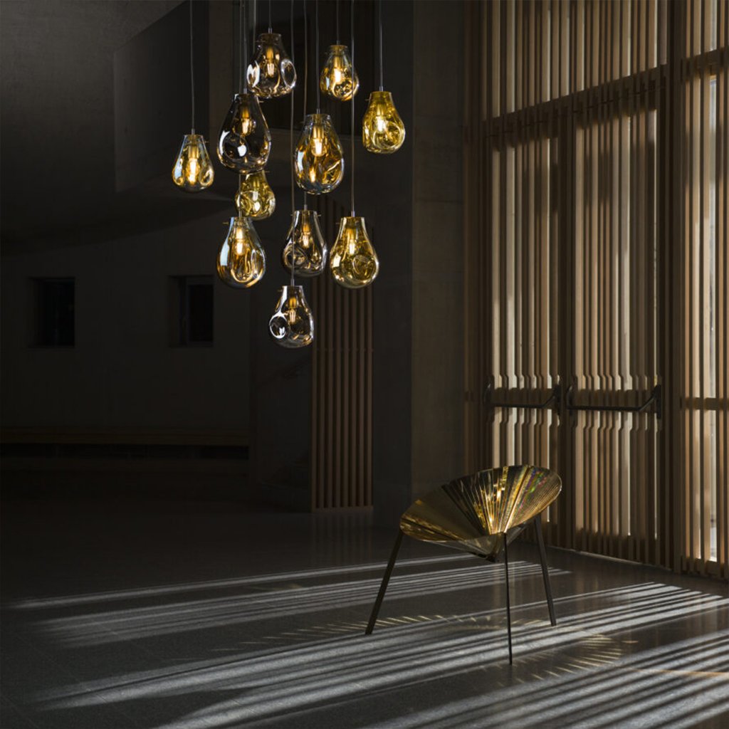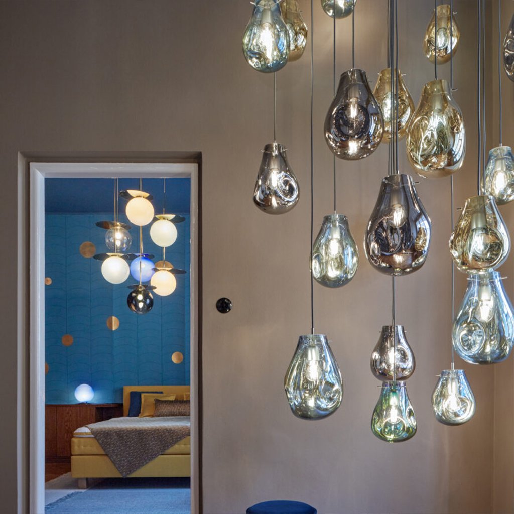 Měňavé barvy, průhlednost a proměnlivost tvarů – právě tyto vlastnosti mýdlových bublin byly předlohou ke vzniku kolekce Soap. Rozsvícením se tato skleněná metalická kapka přemění v poutavý objekt s duhovými odlesky a odhalí tak svůj křišťálový charakter. Tato svítidla jsou vyrobena technikou ručního foukání bez použití formy, kdy je na první pohled dokonalé kapce žhavého skla vtisknut jedinečný tvar i neopakovatelná barevnost.