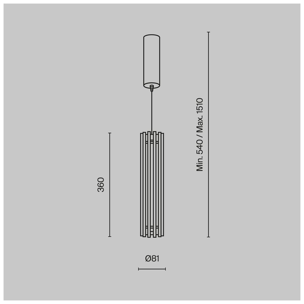 Součástí je válcová stropní rozeta v barvě svítidla s rozměry ø60/180 mm a nastavitelný závěs svítidla s délkou až 1000 mm.