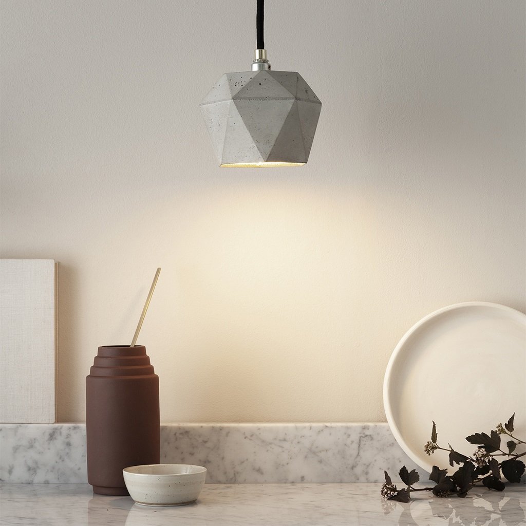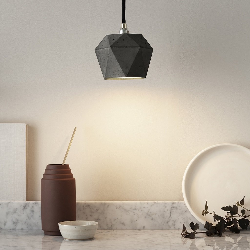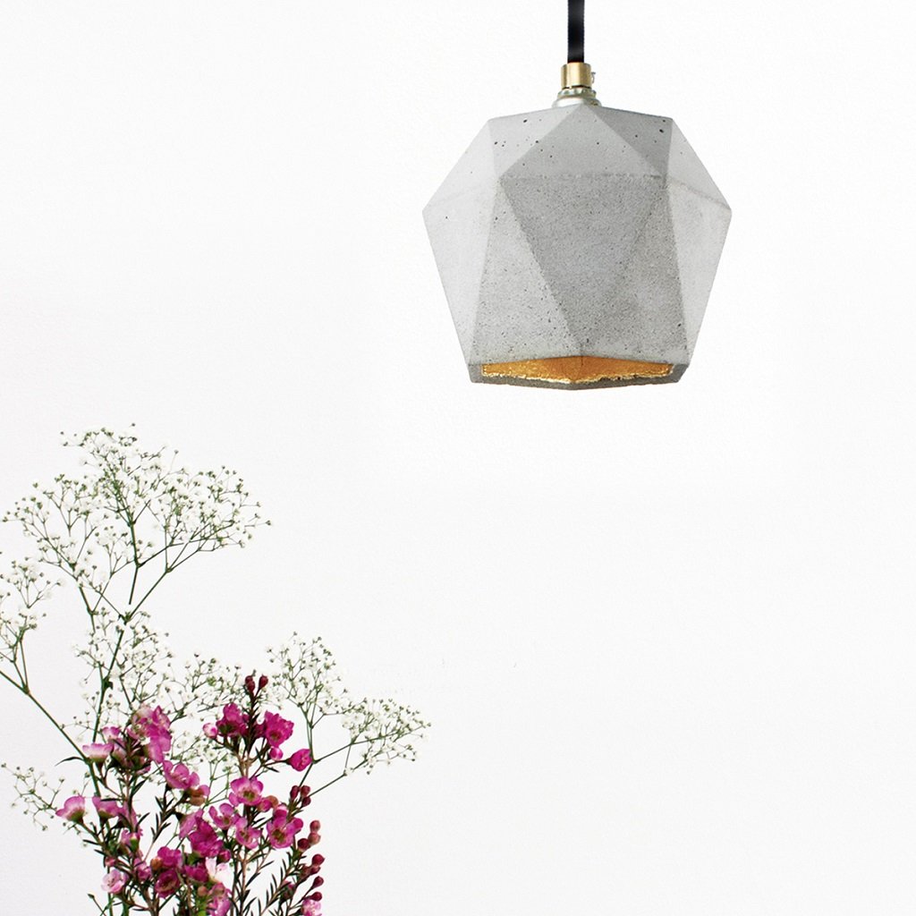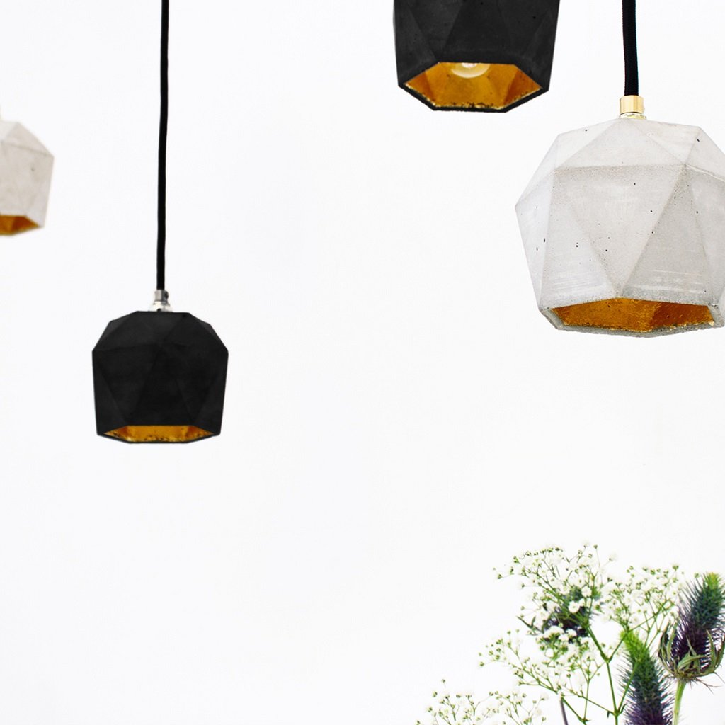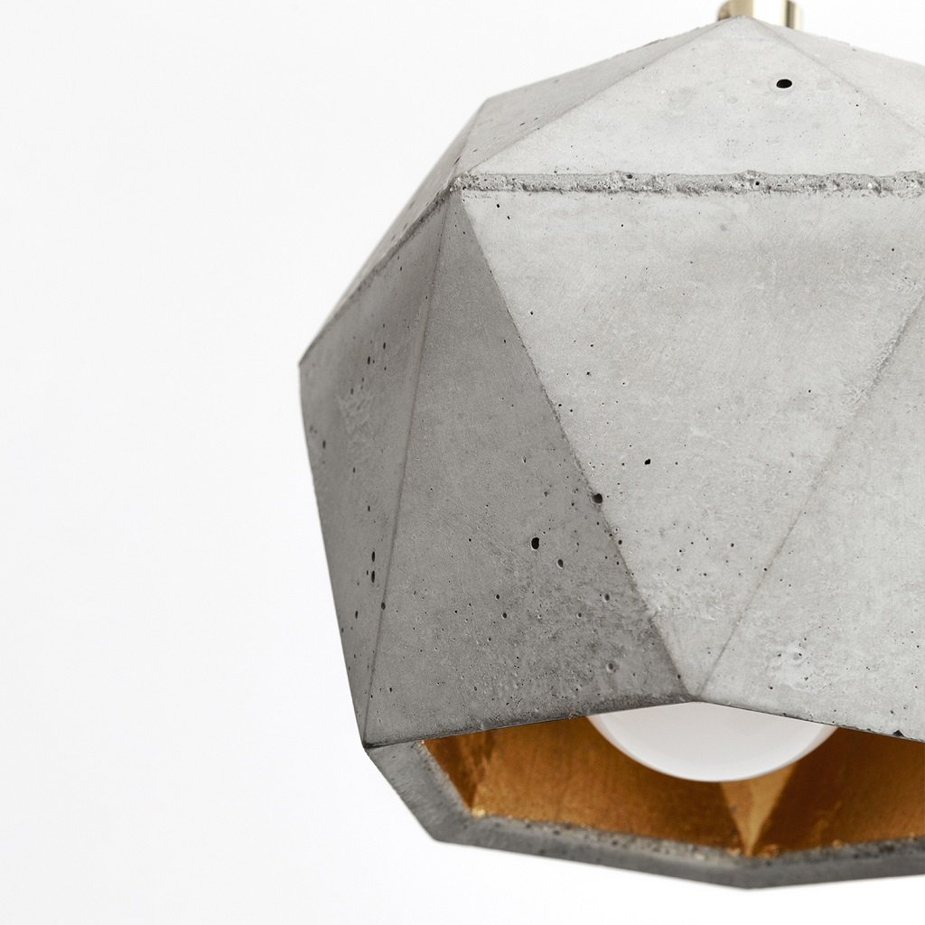 Sympatické až roztomilé závěsné svítidlo T2 složené z trojúhelníků. Svítidlo kombinuje ušlechtilé zlato, měď nebo stříbro s drsným betonem do nadčasového a minimalistického svítidla. Vysoce kvalitní pokovení vnitřních částí odráží vyzařované světlo a vytváří příjemnou atmosféru. Vhodné nad stoly, stolky, pulty a všude tam, kde chcete něco "cool".