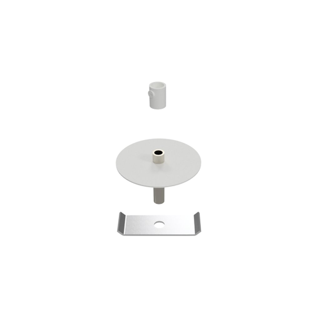 Bílá přisazená hliníková rozeta s rozměry ø120/54 mm je součástí balení.